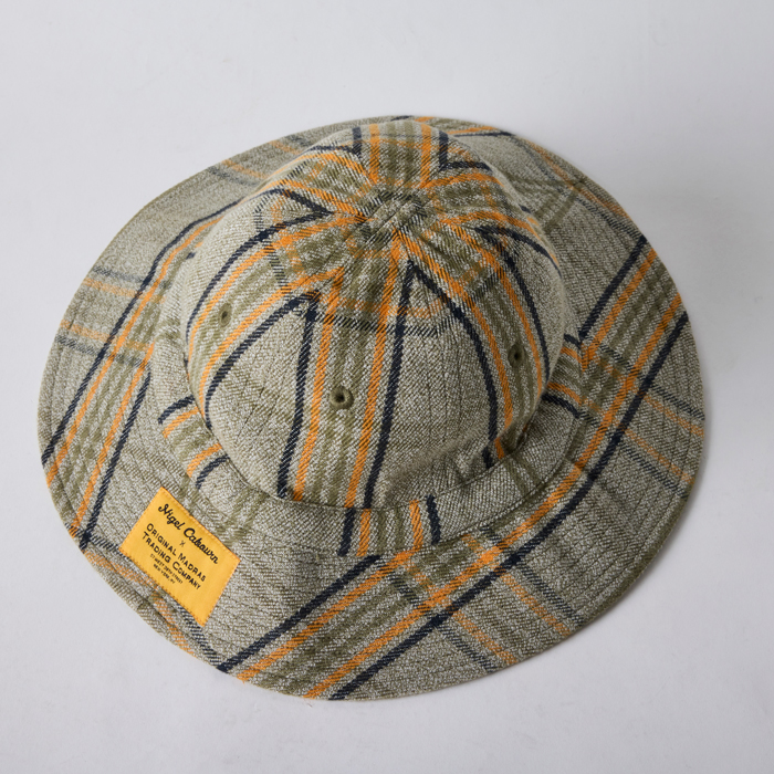 20年ほど前、ナイジェルケーボン氏とは『THE RUGGED MUSEUM』で数回コラボレーションした。ツイードJKTやミリタリー系バッグも作ったが、彼は毎度チェックを選んだ。そのチェック選びのセンスが最高なのだ。当該品は『Nigel Cabourn』がリリースしたリバーシブルハットで、ターゲットはミリタリーのファティーグハット。コットンの杢グレーと、センスが良いチェックをボディの表裏に配置している。よってコーデは、ミリタリー系でもカレッジ系でもデニム系でもOK!コンディションは新品同様だ
