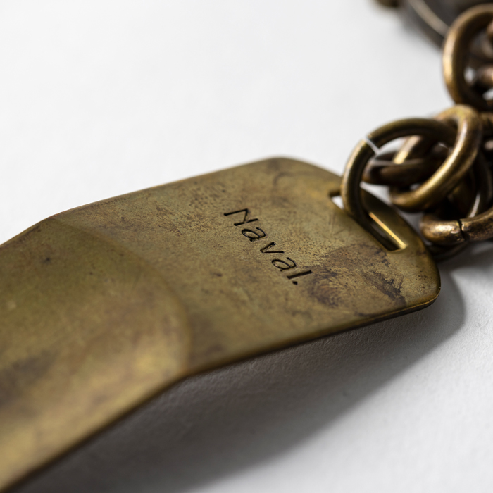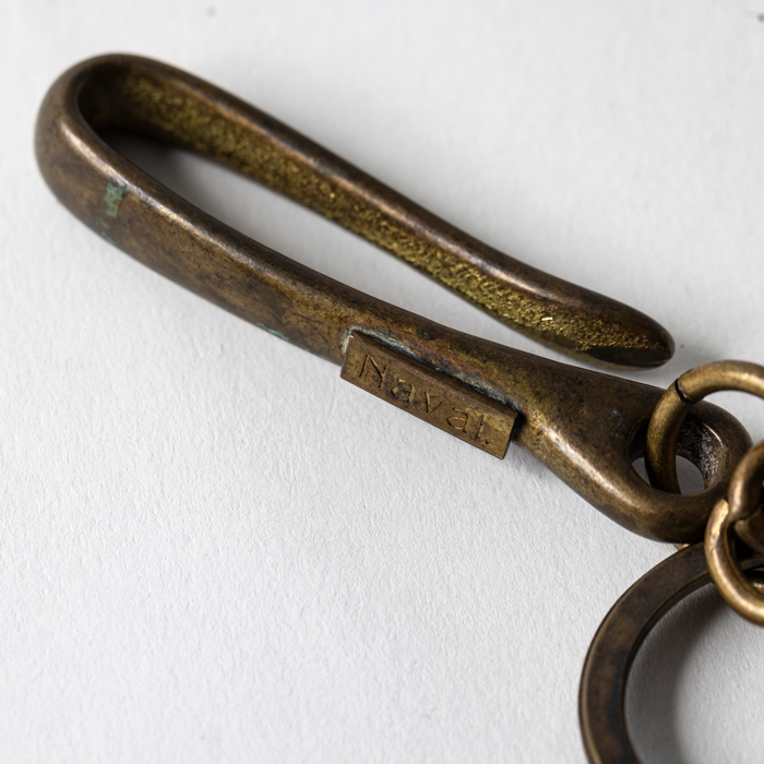 筆者のキーホルダー好きは『ヘイルメリーマガジン』の誌面でも有名だ。先般自身のインスタにポストしたキーホルダーコレクションには、35万回を超える閲覧があったほどだ。今日はコレクションの中から、とっておきのラギッドバージョンを出品する。当該品はブランド不詳のキーフックで、素材はブラスで統一されている。ゴツいフックとシューホーンがワイルドで、そこにヴィンテージのキーがアレンジされている。筆者も幾つか後付けをしている。エイジング物でミントコンディションだ