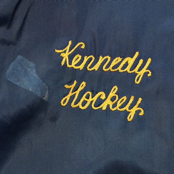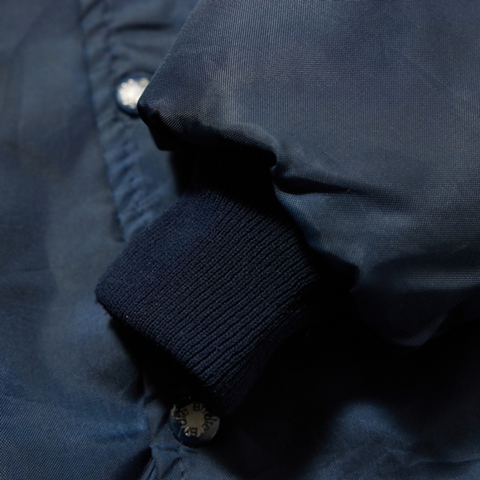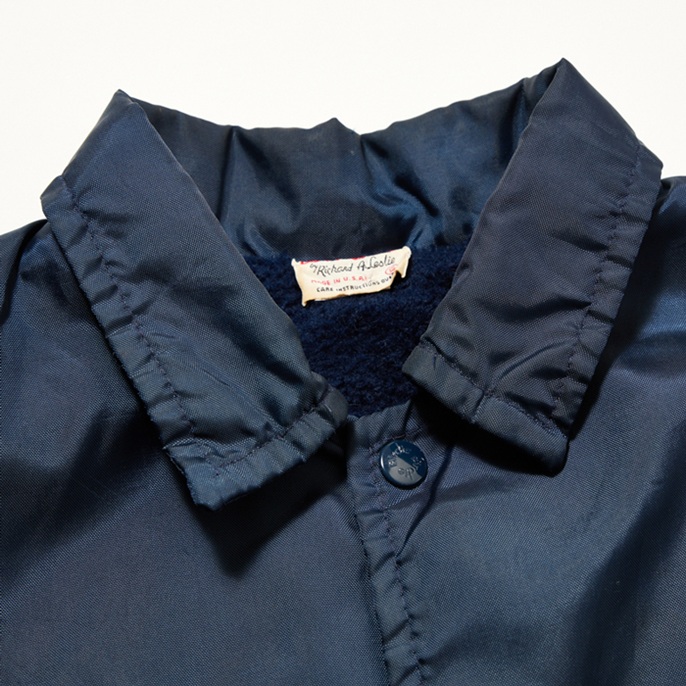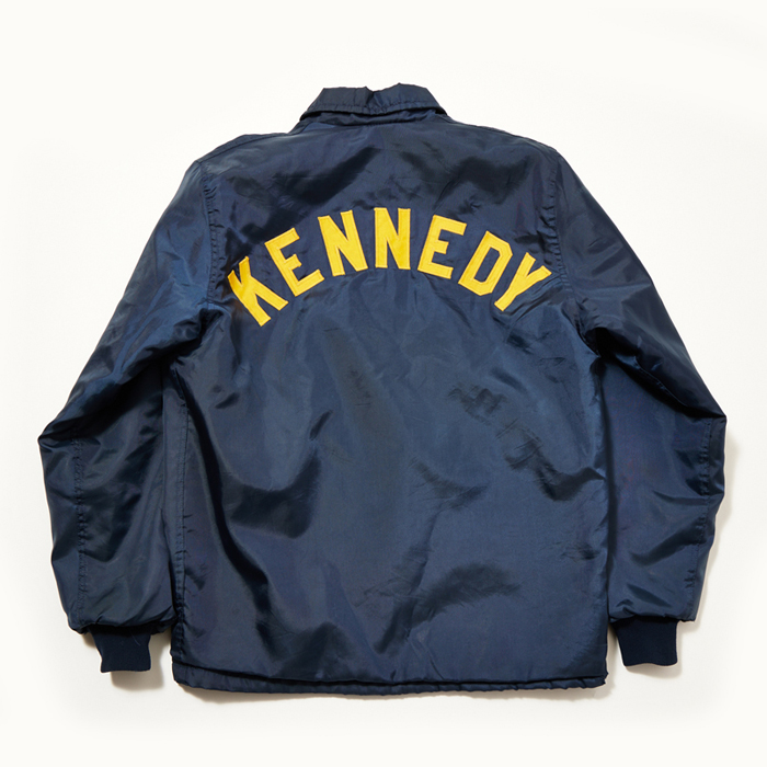 アメリカ製のヴィンテージピースを出品しよう。当該品は60年代にリリースされたネイビーのコーチJKTで、質感のあるナイロンボディと毛足の短い裏地が付くアスレチックタイプの個体だ。特筆すべきは、フロントとリアに入るゴールドの刺繍とワッペンタイプのレター。コーチJKTにとって、高いレベルのボディとアイコンは最重要事項といって過言ではない。前後に入るレターは、アメリカの名門ハイスクールのKENNEDY高校だと推察。サイズSだが実寸は大きい。ヴィンテージ感が嬉しい