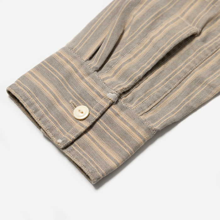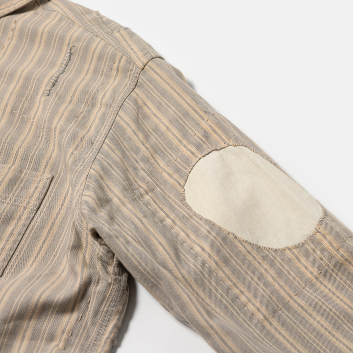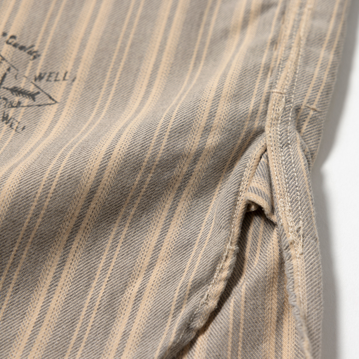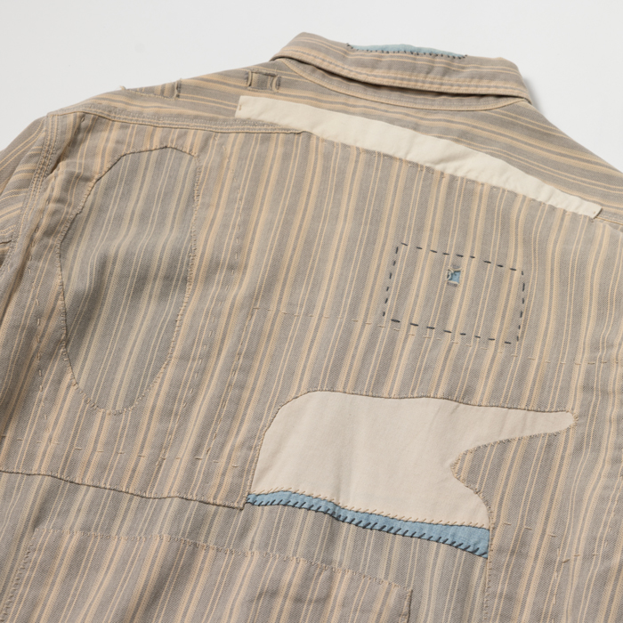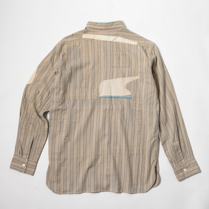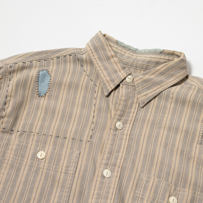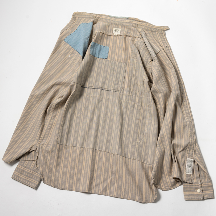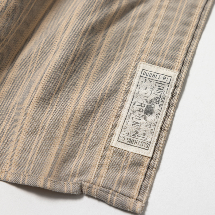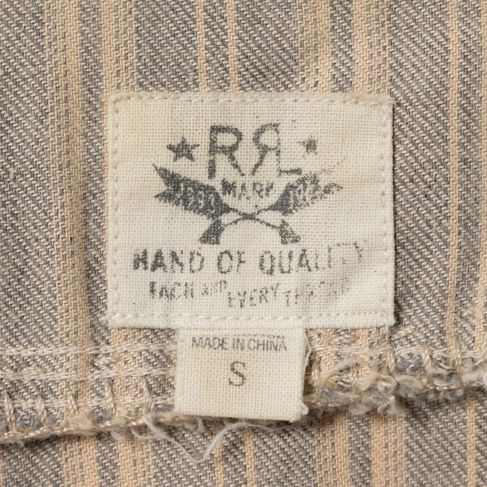 90年代から現在に至るまで、アメリカのヴィンテージブームは継続している。が、21世紀になって10年余り、ヴィンテージより人気を博した再構築ブランドがあった。それがラルフローレン氏肝入りの『RRL』だった。アメカジ上級者に愛好され、人気も価格も凄まじかった。当該品はその頃同ブランドからリリースされたワークシャツで、アメカジ上級者は先駆けになったつぎはぎ加工に熱を上げた。いま、当時のクラシックな『RRL』が人気だ。ダメージ加工のミントコンディション物