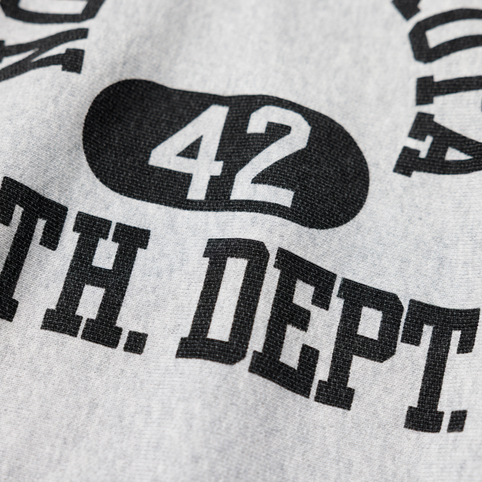 日本の年間平均気温が著しく上昇しているため、今後カットソーアイテムの需要が高くなることが予測される。よって、夏を除く3シーズンに活躍してくれるスウェットシャツは充実させておきたい。当該品は青の単色タグが付く『champion』の復刻版リバースウィーブで、ネ杢グレーボディのクルーネック仕様だ。ブラックの3段ラバープリントで、真ん中に抜き番が挟まるアスレチック物なのが嬉しい。ミントコンディション