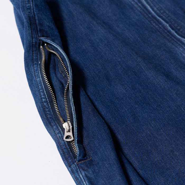 近年筆者が『ヘイルメリーマガジン』の表紙や特集内で着用して、読者諸兄姉から問い合わせが相次いでいるオーバーオールを出品しよう。当該品は『THE CORONA UTILITY』がリリースしたオーバーオールで、アメカジ上級者の間で一番人気を誇るデニム素材。オリーブドラブとデニムを、念の為に2着ストックしていたうちの片割れだ。絶版なのでまず見つからない稀少品だが、特にデニムのオーバーオールは市場に出て来ない。元上代は3万5000円也。グッドコンディションが嬉しい