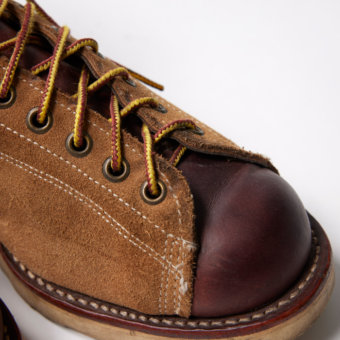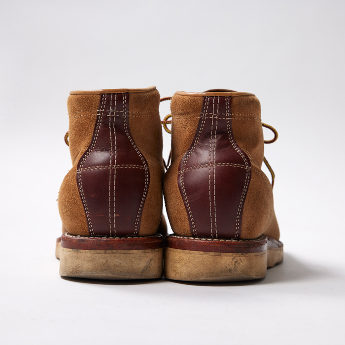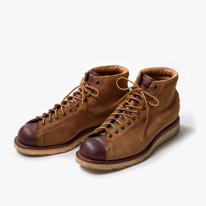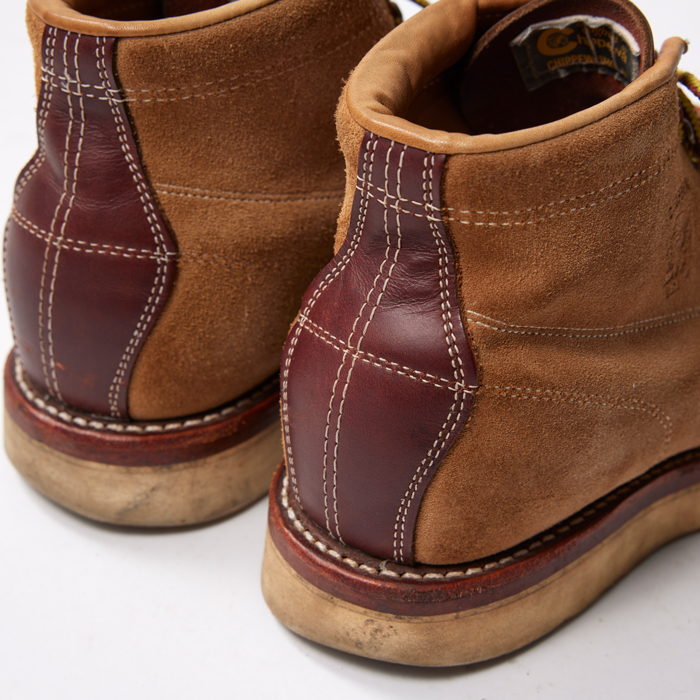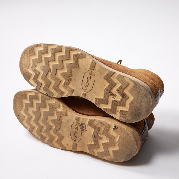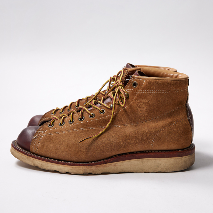 ワークブーツの話をしよう。実のところ、アメカジ上級者には『CIPPEWA』愛好家が多い。アメリカを代表する本気のワークブーツだが、デザイン及び仕様がクールなのがその理由だ。当該品は、同ブランドがリリースした5インチハイトのレースアップブーツ。レザーはヘビーなベージュのラフアウトで、トゥとベロにはブラウンのスムースレザーが配されている。このツートーンが、アメカジ上級者のハートを掴んでいる。サイズは26.5cmくらい。程度も良好だ