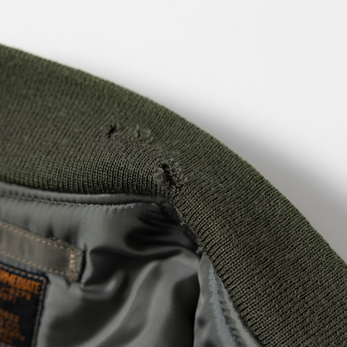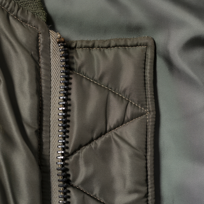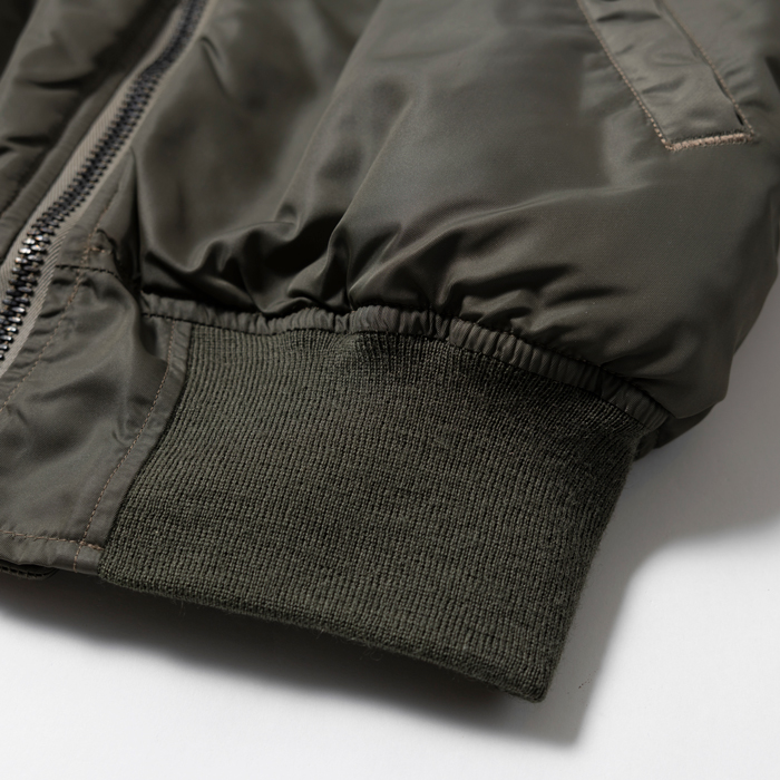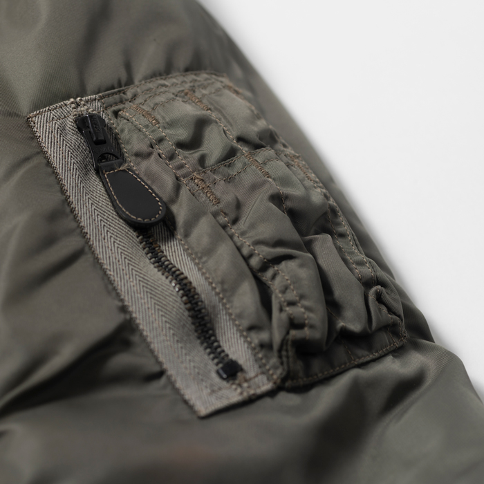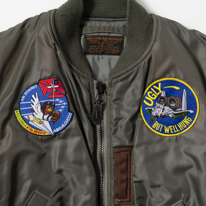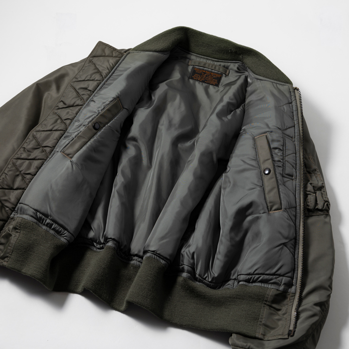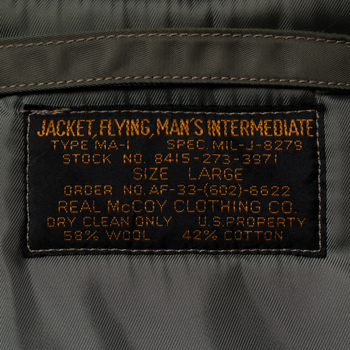 MA-1とはTYPE B-15の系譜にあるアメリカ空軍のフライトJKTで、インターミディエイトゾーンの決定版としてパイロットを中心する兵士たちに愛用された。現在プロのパタンナーが解析しても、当時のパイロットの動きを考慮した複雑なパターンに驚きを隠せない。当該品は『THE REALMcCOYS』がリリースした初期型のMA-1だ。同ブランドの作りは本物顔負けで、「生産コストを考えるとマッコイと同じ作りにはできない」と同業者は口を揃える。撮影に使用しただけの美品だ(3年ほど保管しているのでリブに虫食いがあります。特別価格はそれを考慮しています)