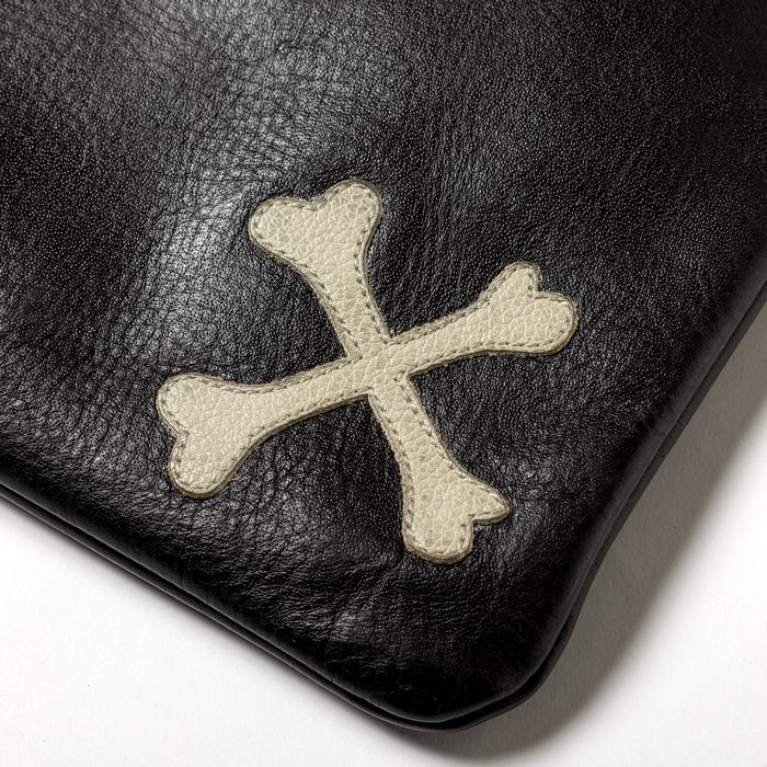 当時バイヤーだった高山氏との関係もあるが、筆者はスタジャンからバッグまで『BACK DROP』の別注アイテムを愛用している。今回は、熱いマニアが多い同ショップの希少な別注物を出品しよう。当該品は、同ブランドが『VANSON』にスペシャルオーダーしたクロスボーンのレザークラッチバッグだ。現在はウエストバッグが流通していて、3万円台後半のプライスカードが付けられている。ブラックボディにクロスボーンが付くクラッチバッグはウルトラレア。ミントコンディションだ