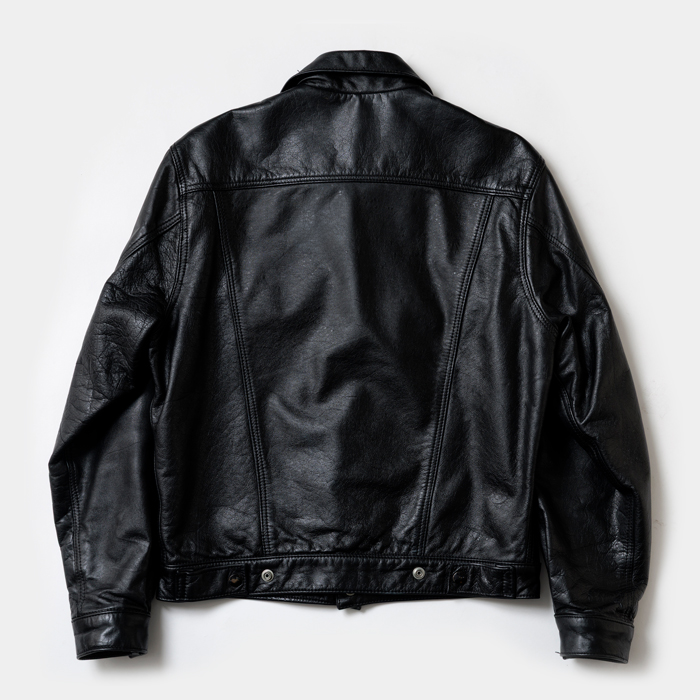 シルエットもディテールもクオリティも高い「MADE IN U.S.A.」のトラッカーJKTを出品しよう。当該品は『California Classics』がリリースしたブラックの3rd.型で、肉厚なシープレザーとルックスがウリな筆者のコレクションだ。12月末売り号のアウターJKT特集にも、筆者の愛用品として掲載されている。同月号にはレザー達人たちのジャケットが数多登場しているが、強者は揃ってこのレザー3rd.型を着用している。当オンラインショップは現在セール中に付き、このレザートラッカーJKTにも特別プライスを設定している。よってアメカジ上級者に是非購入して頂きたい。デッドストックと思えるほどのミントコンディションだ。急げ!ヘイルメリー愛読者‼︎