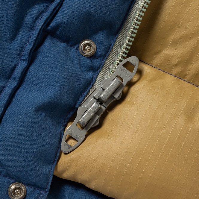 通称“茶タグ” が付くヴィンテージピースの銘品ダウンJKTを出品しよう。当該品は、正規代理店の品質表記タグが付かない『THE NORTH FACE』のダウンJKTで、70s後半に生産されたヴィンテージの「MADE IN U.S.A.」物だ。シェルはブルーの65/35 で、インナーはベージュのナイロンというヘビーデュティーな素材と配色を持つ。そしてジップには『TALON』製のゴツい硬質プラスチック製(グレー)が装着される。スカイライナーやカラコラムのクラシックなダウンJKTも良いが、大学時代にリアルタイムで着用した“永遠の定番”は外せないマスターピースだ。現在、コンディションの良いヴィンテージピースには驚きのプライスが付けられている。当時フードは別売りだった。希少な「M」サイズで、ミントコンディションだ