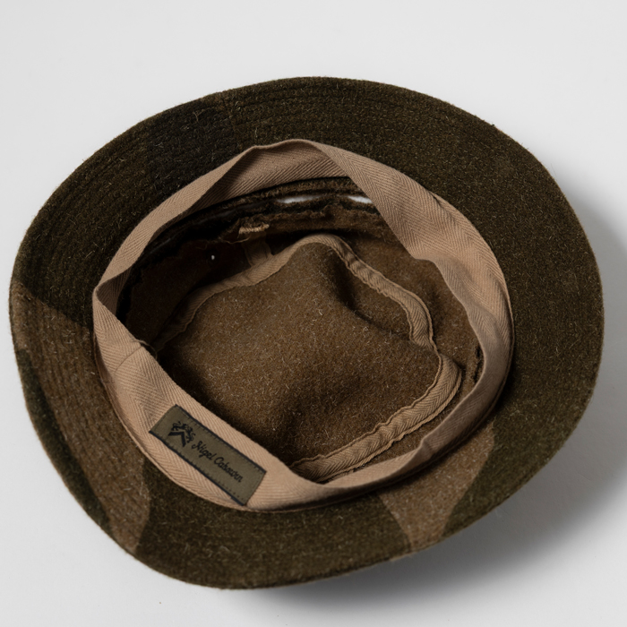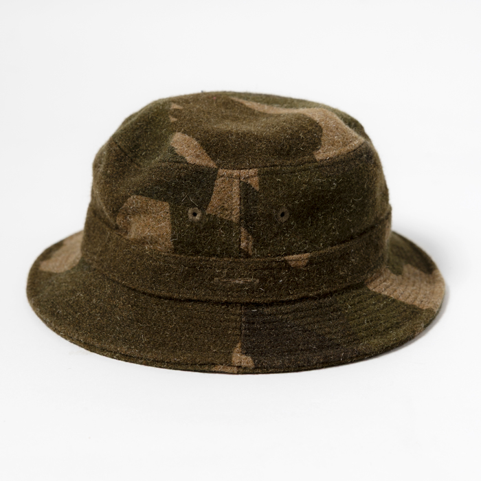ダッズ世代にフィットするワンランク上のハットを出品する。当該品は『Nigel Cabourn』がリリースしたバケットハットで、上質なウール100%素材とオリジナルのカムフラージュパターンが愛好家に人気だ。ナイジェルデザインなので、帽体と鍔のバランスが絶妙。ウール素材ゆえ、マットな見え方もダッズ世代には嬉しい。筆者は、アウトドア系コーデ及びミリタリー系コーデに着用していた。元上代は2万円オーバーだったと記憶している。サイズ58cmでミントコンディションだ