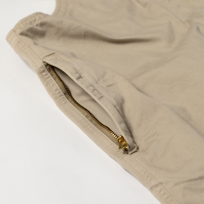 最近『ヘイルメリーマガジン』の表紙及び特集のスタイリングページで、頻繁に着用しているオーバーオールシリーズを出品しよう。筆者が各色コレクションしている当該品は、『THE CORONA UTILITY』が5シーズン前にリリースしたミリタリー系デザインのオーバーオールだ。何気に着用したところ、編集部にアメカジ愛好家からの問い合わせが殺到した。既に完売且つ同ブランドからの発売は予定されていないので、友人達からは「売ってくれ!」コールが連呼されている。熟考した結果、公平を期して自身のオンラインショップで販売することにした。このベージュは2025年8月号の表紙で着用したもので、探しているアメカジ愛好家は多いと思う。素材はヘビーデューティーなモールスキンなので、真夏を除く3シーズンで着用可能。軽度の経年変化があたりをつくり、良い塩梅にエイジングしている。サイズ「M」だが「L」に相当。元上代3万5000円のグッドコンディション物。早いもの勝ちだ!