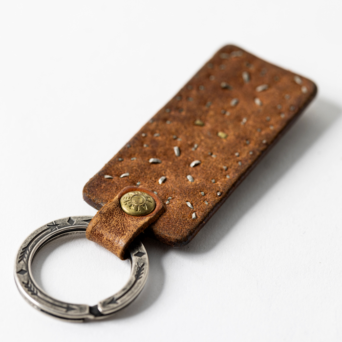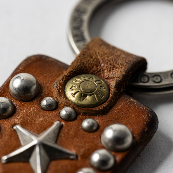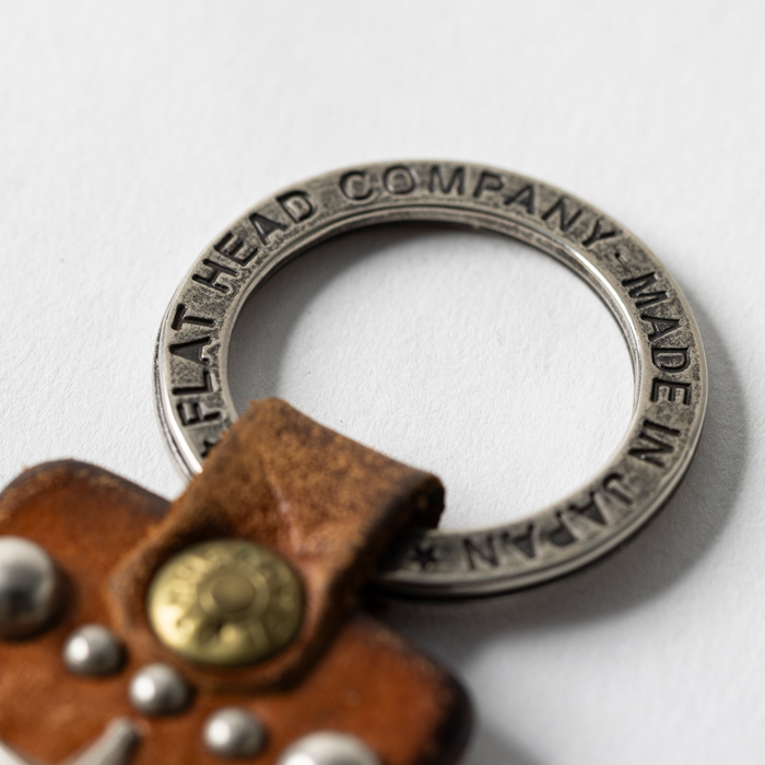 キーホルダー好きだ。が、キーホルダーの蒐集などマイナー中のマイナーだと思っていた。2ヶ月程前、筆者のインスタから5~6個のキーホルダーをポストした。すると、驚きの30万回視聴を達成した。キーホルダー人気を認識した瞬間だった。よって、蒐集する逸品を出品したい。当該品は『THE FLAT HEAD』のキーホルダーで、ヌメのレザーボディにスタッズ&ストーンが施されるマニアックな個体。H-D乗りが多い同ブランドらしいアイテムだ。エイジングが渋いグッドコンディション物