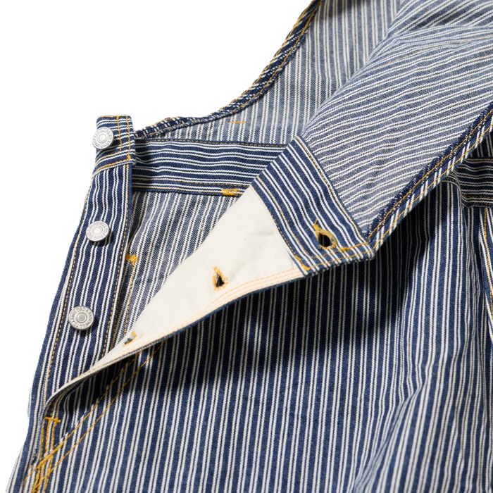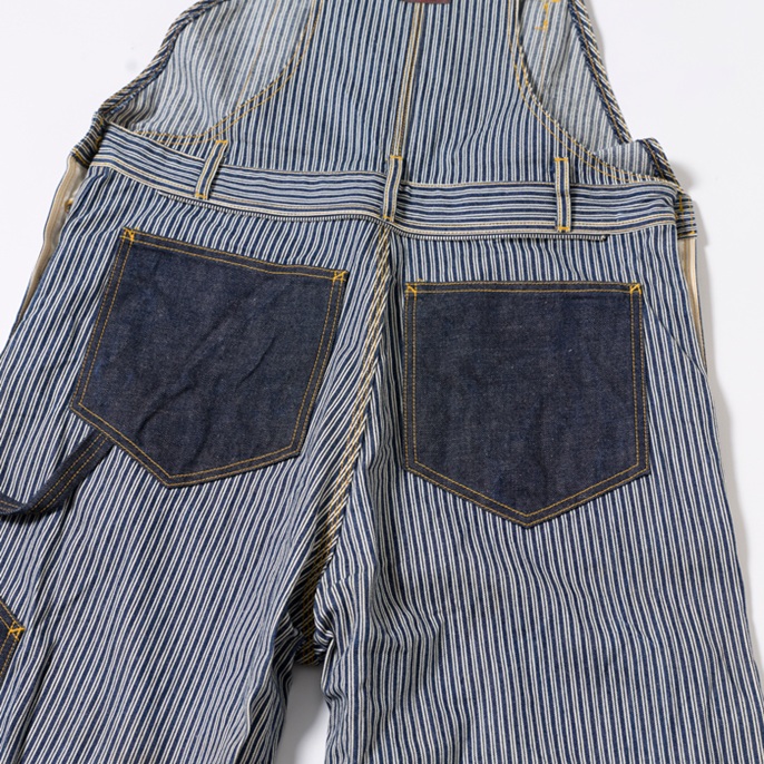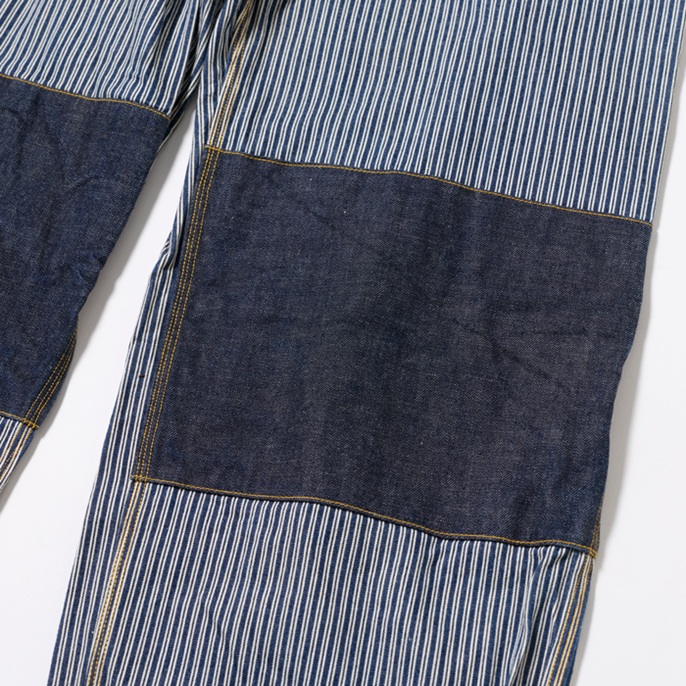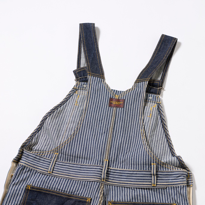 ブランドが終了しているのに加えメンズの球数が少ない関係で、『Country Wear』のジーンズ或いはワークウエアはほとんど市場で目にしない。このブランド、『Hysteric Glamour』の関連ブランドなので、未だマニアックなファンが多い。当該品は同ブランドがリリースしたオーバーオールで、ヒッコリーとデニムのコンポジット型だ。デニム及びヒッコリーのクオリティが高く、シルエット、縫製、ディテール、付属などもパーフェクト。まだ水通しをしていないミントコンディション物だ