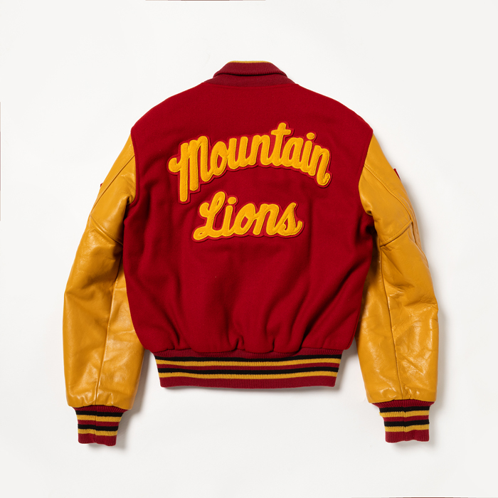 元アメフト選手でアメカジ愛好家ゆえ、スタジャンの真贋にはうるさい。今回は本物中の本物を出品しよう。アメリカの地域チーム或いはクラブチームがオーダーしたフルデコレーション仕様のスタジャンだ。当該品は『Catch Ball」のフルデコ物で、コークレッドのメルトンボディ×マスタードのレザーアームという組み合わせ。特筆すべきは前面、後面、右袖左袖に貼られているビッグキャット種のシニールだ。それはチーム名「Mountain Lions」のアイコンだ。表記はないが、アメリカンフットボールのチームジャケットだと推察する。加えてこの個体は、デッドストック級のコンディションを誇っている。右袖のリブに1箇所穴あきはあるが、恐らく筆者が撮影に着用しただけだと思われる。是非、貴殿のコレクションに加えて頂きたい