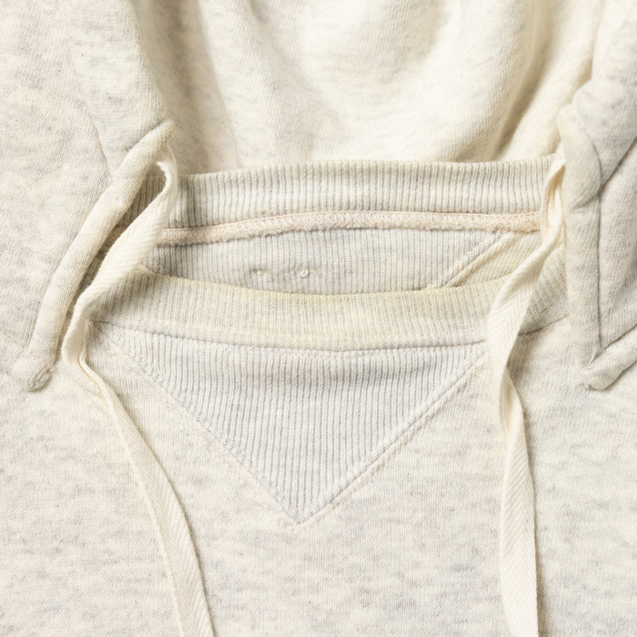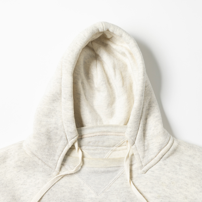 誰もがヴィンテージと見間違うスウェットパーカを出品しよう。意図してタグを外しているが、当該品は『FULLCOUNT』がリリースしたダブルフェイスのフーディー。同ブランドが、40sのヴィンテージピースをターゲットにした10年ほど前のモデルだ。当時の色味に近い杢グレーボディ、後付けのフード、ネイビーブルーのカンガルーポケットが、リアルな雰囲気を醸し出している。現在、レプリカのダブルフェイスは上代4万円レベル。今回は、特価設定での出品。グッドコンディションだ