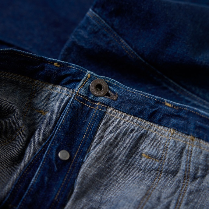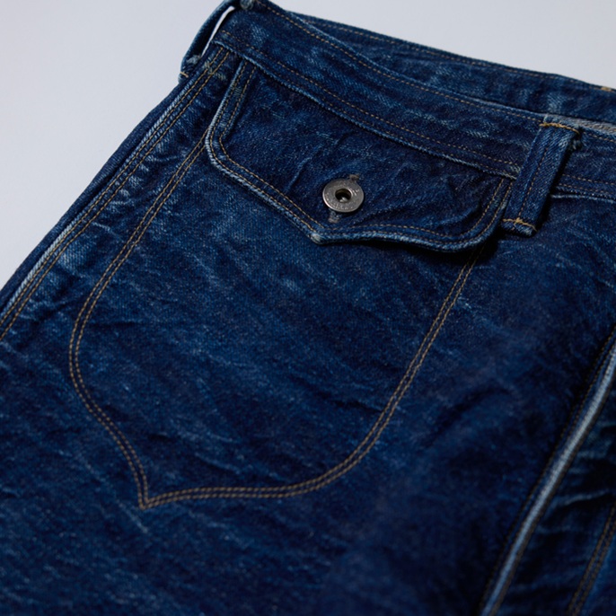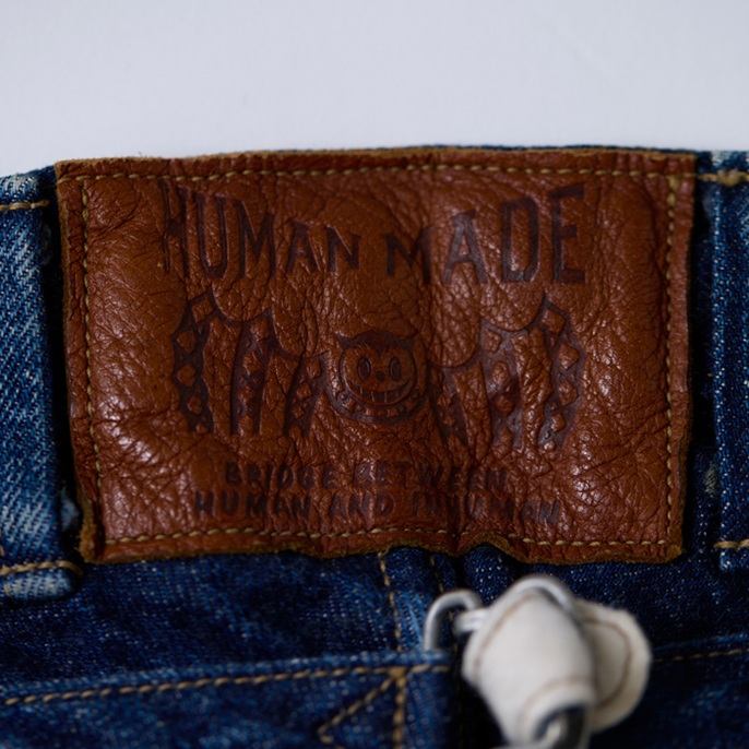 ヴィンテージジーンズマニアのNIGO氏が所有(ウエアハウスも所有)する1879年製の『UNION PACIFIC』をターゲットにして、『HUMAN MADE』×『WARE HOUSE』のコンビでつくられた幻のカウボーイジーンズ復刻版を出品しよう。前後のフラップポケット、ヨークの切り替え、ヒップポケット及びステッチデザインには、ヴィンテージジーンズ好きを魅了するパワーがある。フラットなバックルバックやツーブロングのドーナツボタンなど、パーフェクトなディテールにも感動。ウルトラレアな個体で、グッドコンディションだ