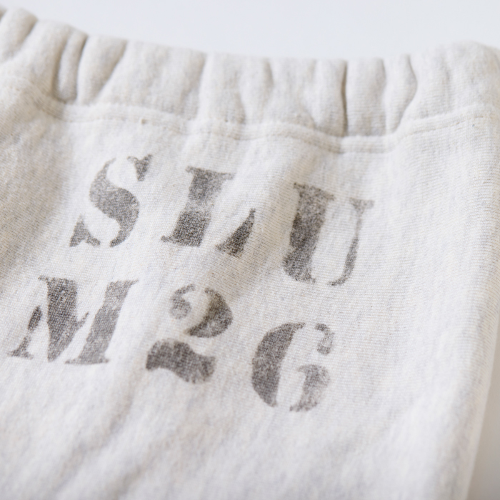クオリティもルックスも、現行リバースウィーブより一段ステージが高いスウェットパンツを出品する。当該品は現在『WAREHOUSE』がリリースしている杢グレーのスウェットパンツで、スウェットマニアの塩谷兄弟がリバースウィーブ超えを狙った渾身のスウェットパンツだ。よって、前面に入る本気のステンシルがクール。加えてナンバーのワッペンが付く。スウェット素材も分厚くヘビーデューティー、サイズ「XL」のミントコンディションだ