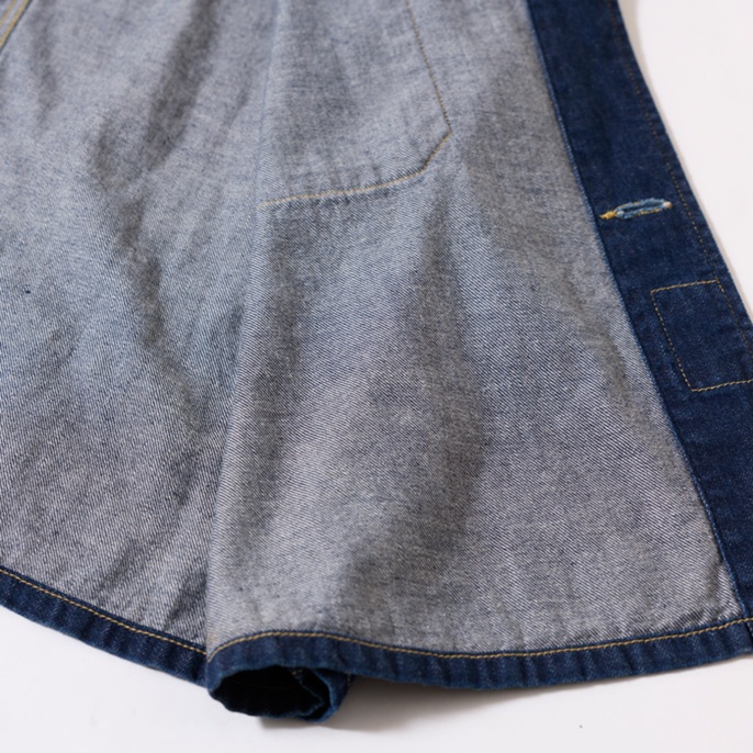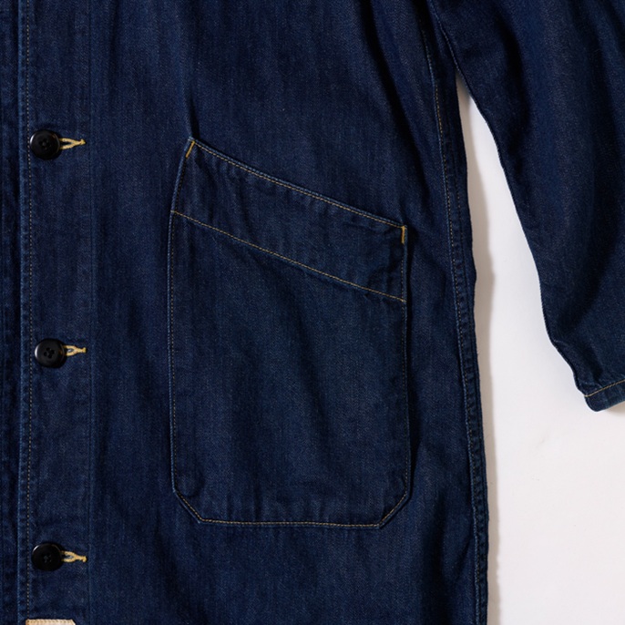 次号(2026年5月号)の『ヘイルメリーマガジン』では、カバーオールJKTを特集している。よって、エンジニア(ショップ)コートも多数掲載されている。それを先取りして、筆者のコレクションを出品しよう。当該品は『KAPITAL』がリリースしたエンジニアコートで、カバーオール系をスリムめに着用する筆者のお目に適った一着だ。ライトオンスデニムの真っ紺ボディに、同ブランド特有のデザイン及びディテールが光っている。サイズ3(L相当)で、ミントコンディションだ