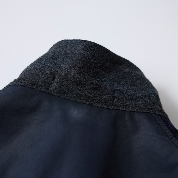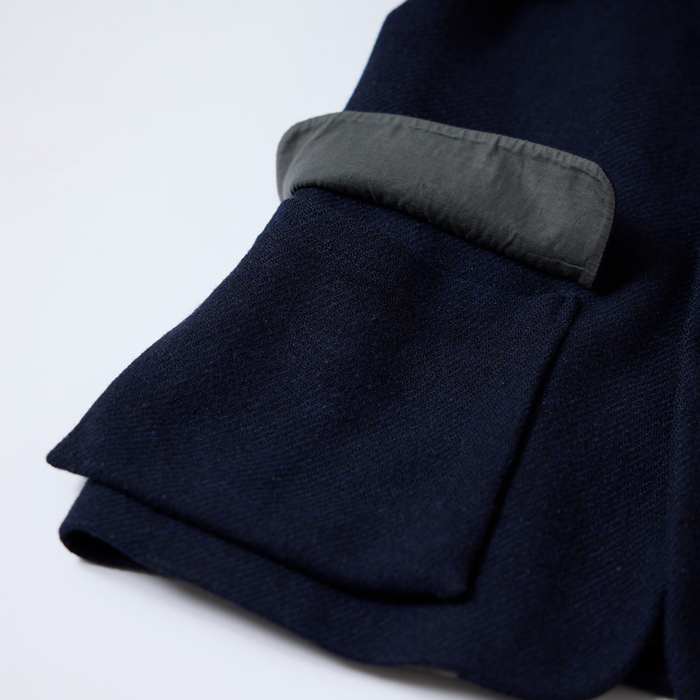 『ヘイルメリーマガジン』2026年4月号で、筆者は『Naigel Cabourn』テンジンJKTの色違い3着コーディネートを披露した。筆者が館長を務めた青山『THE RUGGED MUSEUM』で、筆者とナイジェル氏が企画会議を行いコラボレーションしたアイテムでもある。よって、長く人生を共にしている相棒的存在だ。当該品はネイビーブルーボディのハリスツイード×同色の高密度コットンベンタイルを組み合わせたテンジンJKTゆえ、コーディネートがし易くダッズに向いたエクスプローラージャケット。筆者はジーンズ、インディゴ及びホワイトのペインターパンツ、オリーブのカーゴパンツ、チノーズなど、様々なボトムスと合わせていた。ベンタイルにあたりがあるが、そのエイジングの味が分かる人に購入していただきたい。サイズ「48」=L相当でグッドコンディションだ