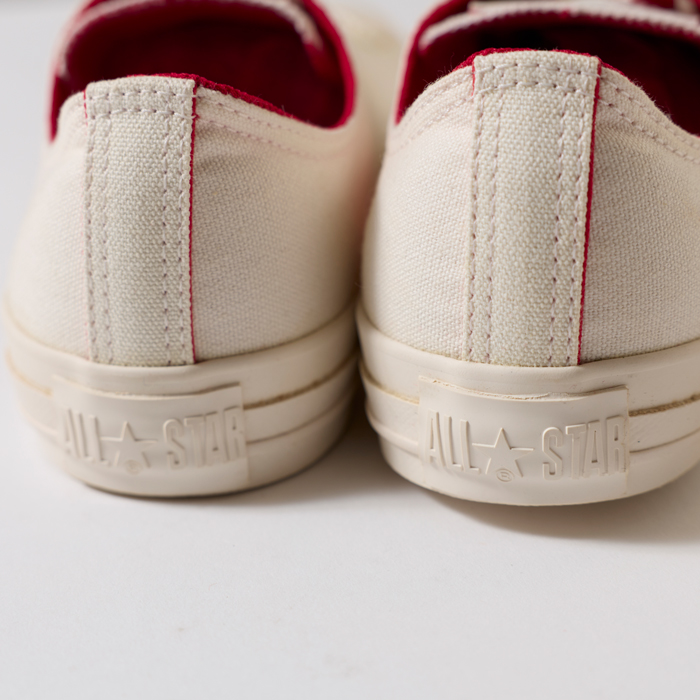 スタジオ内でのファッションフォトに使用した白いスニーカーを出品しよう。当該品は日本企画の『CONVERSE』ALL STARで、キャンバス素材のホワイトボディだ。インサイドがレッドの仕様で程よく挿し色が効いている。ダッズ世代は、春が来ると真っ白なスニーカーが穿きたくなるはず。ファッション撮影もそれを狙った企画だった。「ホワイトボディのスニーカーは、ユーズドで購入するのはリスクがある」。そんなダッズにお勧めしたい。サイズ28cmでコンディションは新品同様だ