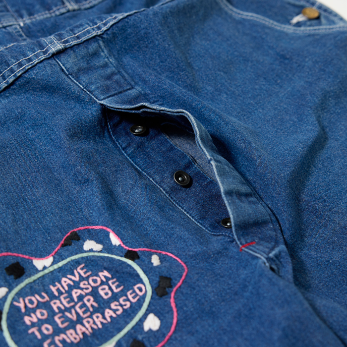 筆者がコレクションしているカスタムセンス抜群のオーバーオールを出品しよう。当該品はアメリカのワークウェアブランド『Dickies』から、80s〜90sにリリースされたオーバーオールだ。同社は1922年にテキサス州フォートワースでスタートした100年の歴史を持つ名門企業。同ブランドにとって、オーバーオールは鉄板アイテムでもある。カスタムセンス抜群とは、膝上に施されたピースフル且つカラフルな刺繍だ。未来の恋人に贈るメッセージが、いかにもアメリカ。W38×L30はオーバーオールのゴールデンサイズ。ミントコンディションが嬉しい