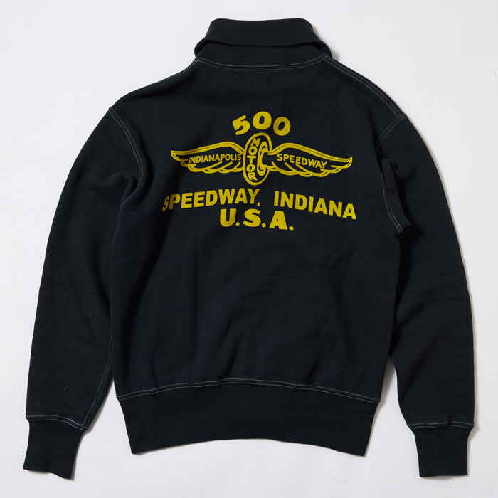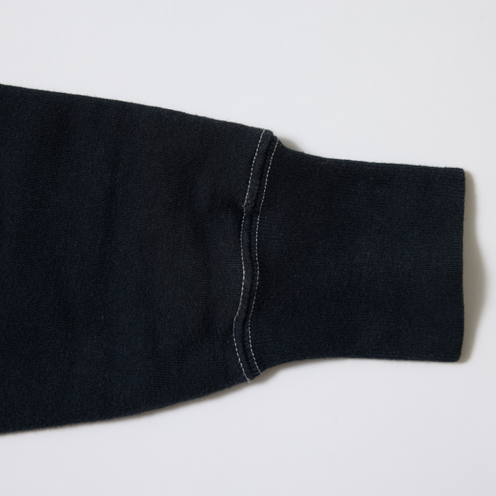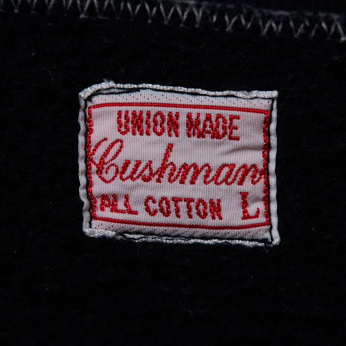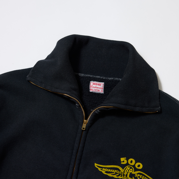 『ヘイルメリーマガジン』の読者諸兄姉はご承知だが、筆者はヴィンテージと同様に日本のアメカジブランドがリリースするクールなアイテムをコーディネートに取り入れている。その中で『CUSHMAN』は購入頻度が高い。当該品は同ブランドがリリースしたモーターサイクルチームのスウェットシャツ(TEAM JKT)だ。特筆すべきは、❶ブラス素材のフロントジップ仕様❷前後にモーターサイクル系の染み込みプリント(ゴールド)が入る❸ボディカラーのヴィンテージブラックがクール、の3つ。サイズ「L」でミントコンディションだ