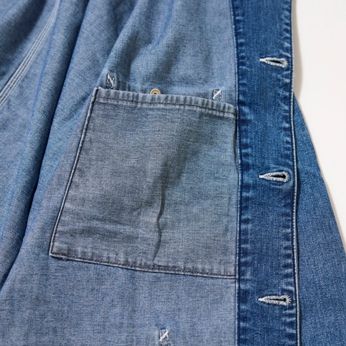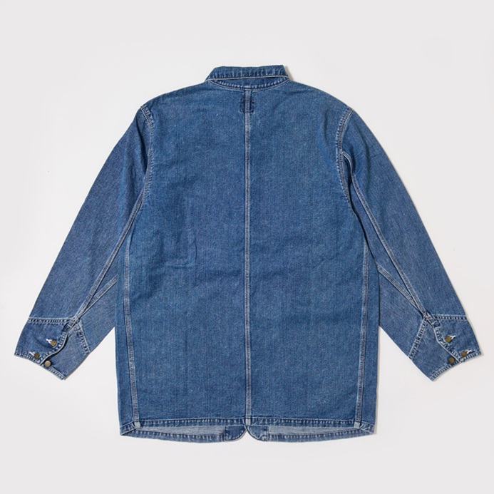 『ヘイルメリーマガジン』6月号のジーンズ特集で、編集長のコレクションとしてズバリ!このカバーオールが掲載されている。当該品は『Lee』が90年代にリリースした復刻版のカバーオールだ。オリジナルは50sの91-Jで、当時のハウスタグ、トリプルステッチ、ロングLの首振りボタンなどヴィンテージ愛好家が喜ぶディテールが満載だ。控えめでクールなエイジングと日本製が人気だった。当時、Free&Easy』で記事を書いた記念に購入。サイズ「L」で撮影着用のみのミントコンディションだ