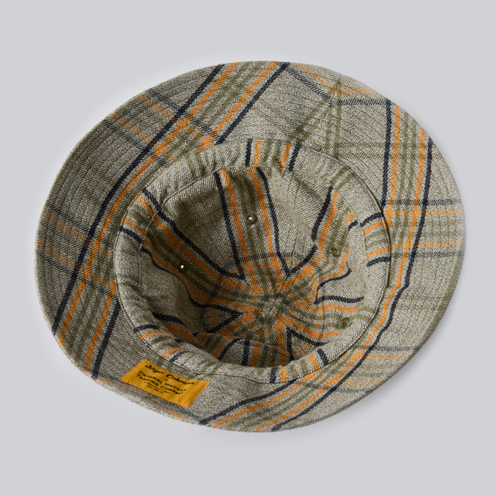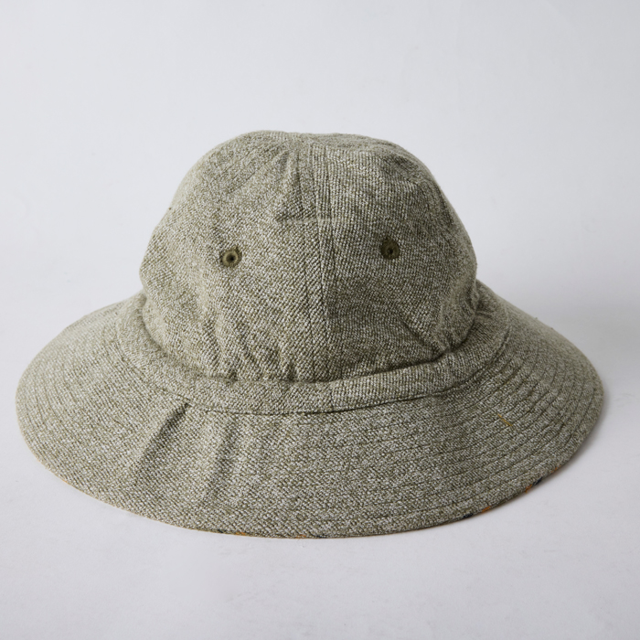 20年ほど前、ナイジェルケーボン氏とは『THE RUGGED MUSEUM』で数回コラボレーションした。ツイードJKTやミリタリー系バッグも作ったが、彼は毎度チェックを選んだ。そのチェック選びのセンスが最高なのだ。当該品は『Nigel Cabourn』がリリースしたリバーシブルハットで、ターゲットはミリタリーのファティーグハット。コットンの杢グレーと、センスが良いチェックをボディの表裏に配置している。よってコーデは、ミリタリー系でもカレッジ系でもデニム系でもOK!コンディションは新品同様だ
