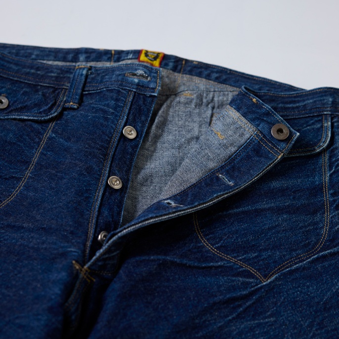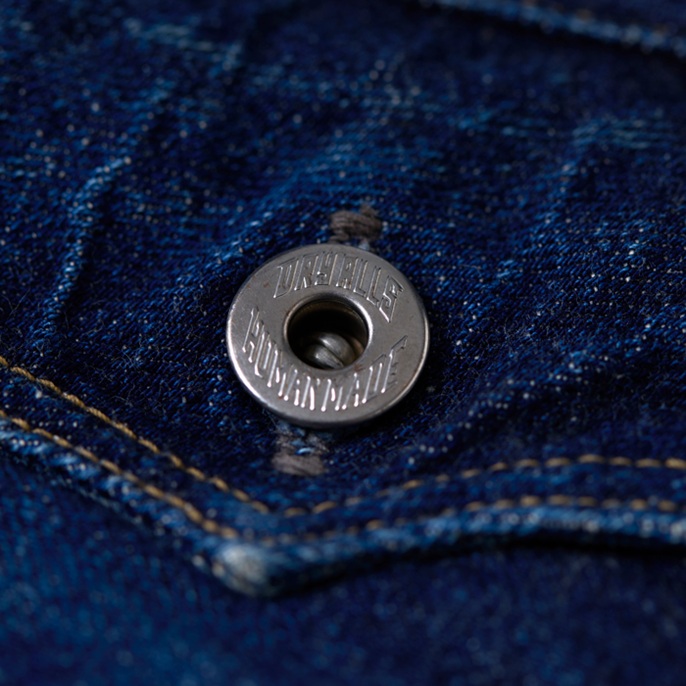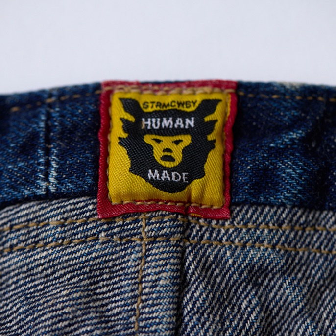 ヴィンテージジーンズマニアのNIGO氏が所有(ウエアハウスも所有)する1879年製の『UNION PACIFIC』をターゲットにして、『HUMAN MADE』×『WARE HOUSE』のコンビでつくられた幻のカウボーイジーンズ復刻版を出品しよう。前後のフラップポケット、ヨークの切り替え、ヒップポケット及びステッチデザインには、ヴィンテージジーンズ好きを魅了するパワーがある。フラットなバックルバックやツーブロングのドーナツボタンなど、パーフェクトなディテールにも感動。ウルトラレアな個体で、グッドコンディションだ
