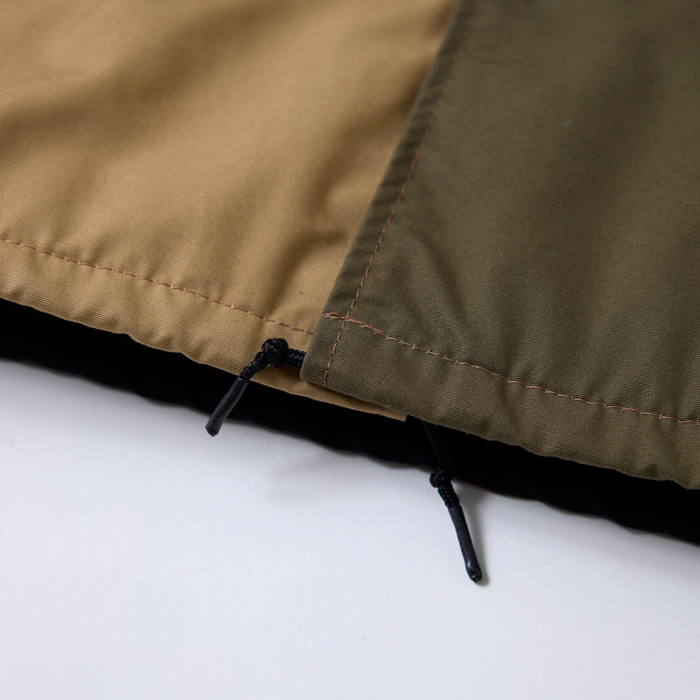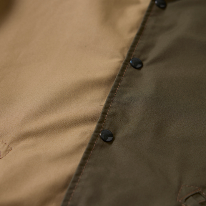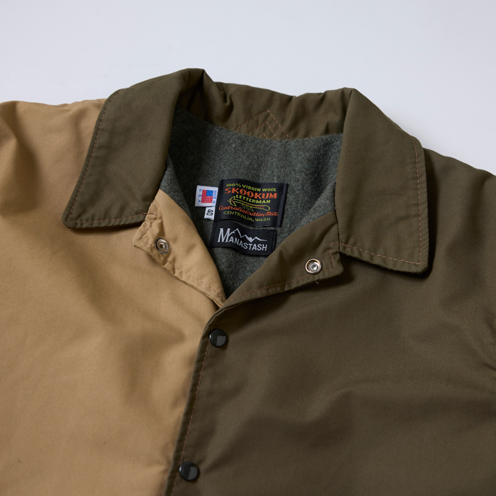 米国の名門アスレチックブランドと、米国の新鋭アウトドアブランドがコラボレーションしたアメリカ製のコーチJKTを出品する。当該品は『SKOOKUM』×『MANASTASH』の別注且つ限定のコーチJKTで、ブラック×ブルー×ネイビー×ベージュ×カーキの5プレートを組み合わせたクレイジーパータンがウリ。ボディは、同ブランドがコーチJKT用に開発したコットン35%ポリエステル65%のヘビーデューティーな撥水素材だ。3シーズンで着用可能。サイズ40でコンディションは新品同様だ