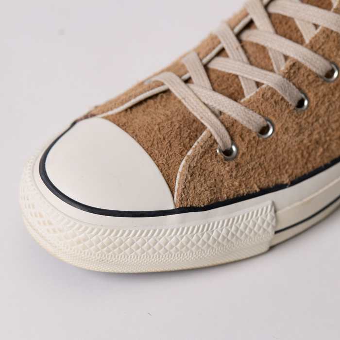 日本企画の『converse』「ALL STAR」及び「Chuck Taylor」を、筆者が愛用するのには理由がある。80年代のアメリカ製オールスターをターゲットにしているからだ。スッキリとしたルックスと『VIBRAM』ラバーソールの履き心地が良いのだ。当該品はその日本企画のオールスターで、ライトブラウンのスエード(リアルレザー)アッパーがダッズ世代にピッタリ!ブラックのヒールパッチには、「Chuck Taylor」の名前が入っている。サイズ9.5インチ(28cm)で、コンディションは新品同様だ