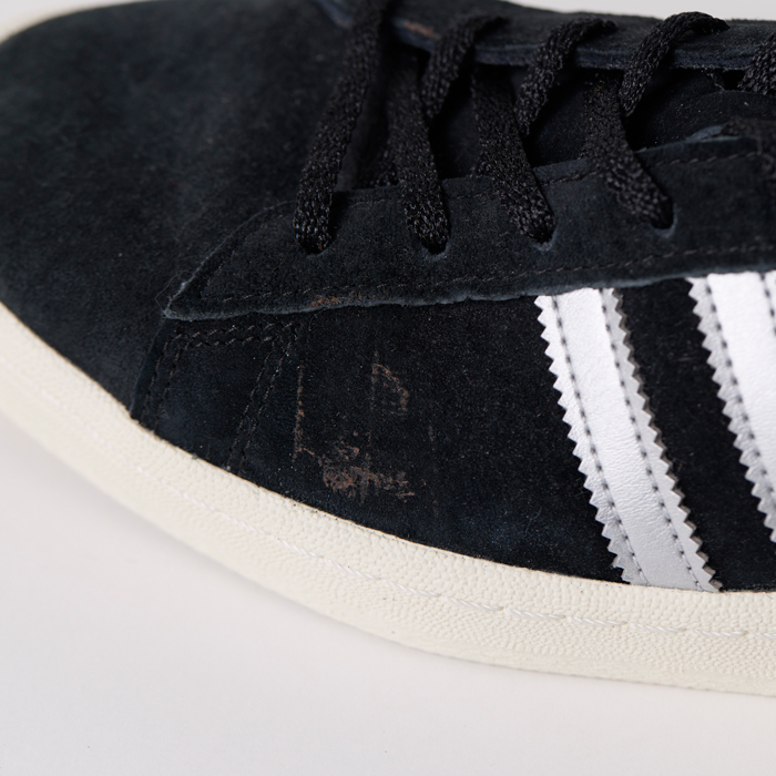 『ヘイルメリーマガジン』及び筆者のインスタでも記しているが、最近はブラック中心のコーディネートが増えている。それがきっかけで、必要以上にブラックのシューズを購入している。よって数足オンラインで販売したい。当該品は『adidas』の「CAMPUS」で、トレーニングからファッションユースまでをカバーするラインシューズだ。スエードのブラックアッパー×シルバーの3本線が気に入って購入。ジーンズ、カーゴ、スウェットパンツと相性良し。ミントコンディションでサイズは28.5cmだ