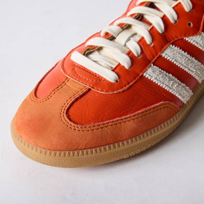 伝説のシューズ(復刻版)を出品しよう。『adidas』サンバの歴史は1950にまで遡る。本国ドイツでの凍ったサッカーピッチの使用を目的に開発された。その後ブラジルワールドカップでのプロモーションで、氷上での高いパフォーマンスに由来して、サンバというモデル名が冠された。その後多くのミュージシャンやアーチストから愛用されて、ファッションシーンの人気者になった。当該品はその復刻版で、その中でもオレンジの個体は3万円超えのプレミアム価格になっている。サイズ28.5cmでミントコンディションだ