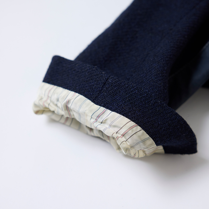 『ヘイルメリーマガジン』2026年4月号で、筆者は『Naigel Cabourn』テンジンJKTの色違い3着コーディネートを披露した。筆者が館長を務めた青山『THE RUGGED MUSEUM』で、筆者とナイジェル氏が企画会議を行いコラボレーションしたアイテムでもある。よって、長く人生を共にしている相棒的存在だ。当該品はネイビーブルーボディのハリスツイード×同色の高密度コットンベンタイルを組み合わせたテンジンJKTゆえ、コーディネートがし易くダッズに向いたエクスプローラージャケット。筆者はジーンズ、インディゴ及びホワイトのペインターパンツ、オリーブのカーゴパンツ、チノーズなど、様々なボトムスと合わせていた。ベンタイルにあたりがあるが、そのエイジングの味が分かる人に購入していただきたい。サイズ「48」=L相当でグッドコンディションだ