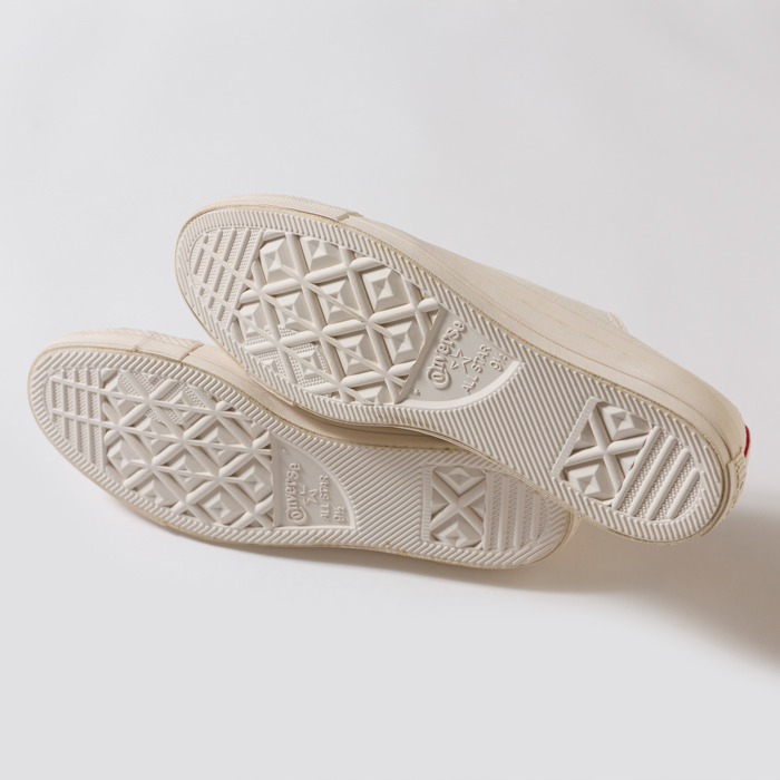 スタジオ内でのファッションフォトに使用した白いスニーカーを出品しよう。当該品は日本企画の『CONVERSE』ALL STARで、キャンバス素材のホワイトボディだ。インサイドがレッドの仕様で程よく挿し色が効いている。ダッズ世代は、春が来ると真っ白なスニーカーが穿きたくなるはず。ファッション撮影もそれを狙った企画だった。「ホワイトボディのスニーカーは、ユーズドで購入するのはリスクがある」。そんなダッズにお勧めしたい。サイズ28cmでコンディションは新品同様だ