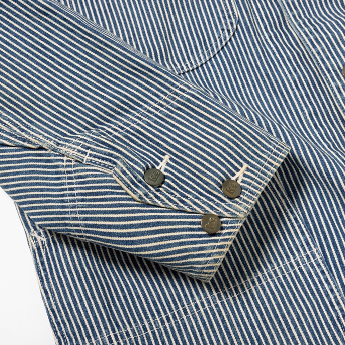 最新の『ヘイルメリーマガジン』5月号は、『ジーンズ至上主義』と銘打ったデニム特集号だ。筆者はコレクションする10着のカバーオールJKTを披露している。そこに掲載されたその物が、当該の『Lee』91-J=ヒッコリーカバーオールだ。元々ヴィンテージを所有していたが、日本製復刻版の完成度が高かったので購入した。トリプルステッチ、ユニオンチケット、ロングLの首振りボタン、50年代のハウスタグなど、ヴィンテージ好きが喜ぶディテールが満載。ミントコンディションだ