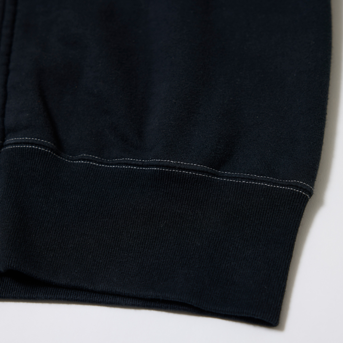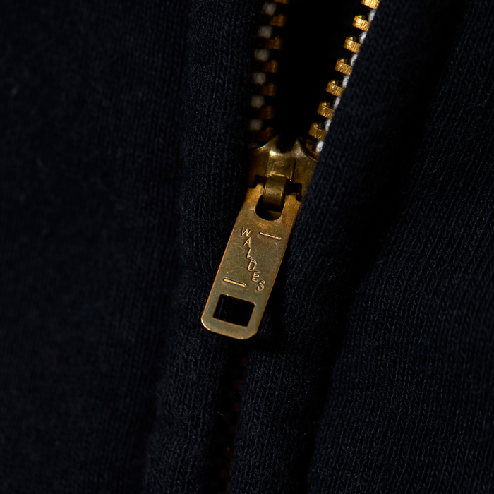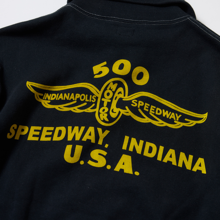 『ヘイルメリーマガジン』の読者諸兄姉はご承知だが、筆者はヴィンテージと同様に日本のアメカジブランドがリリースするクールなアイテムをコーディネートに取り入れている。その中で『CUSHMAN』は購入頻度が高い。当該品は同ブランドがリリースしたモーターサイクルチームのスウェットシャツ(TEAM JKT)だ。特筆すべきは、❶ブラス素材のフロントジップ仕様❷前後にモーターサイクル系の染み込みプリント(ゴールド)が入る❸ボディカラーのヴィンテージブラックがクール、の3つ。サイズ「L」でミントコンディションだ