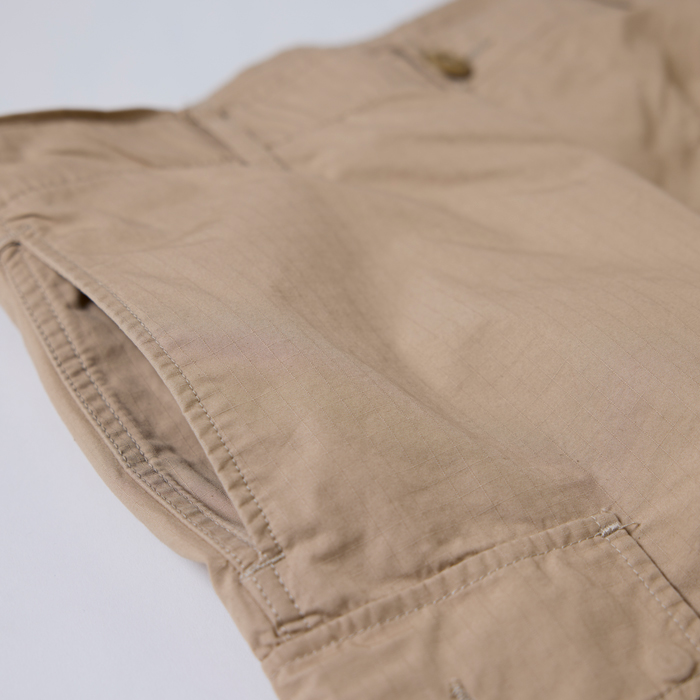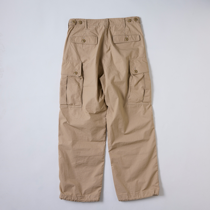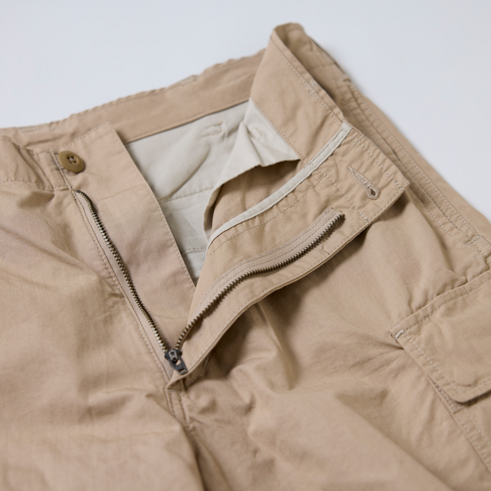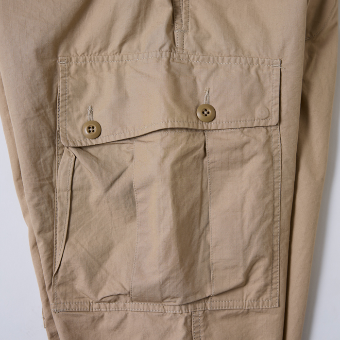 『BEAMS』のオリジナルアイテム制作能力は、日本のメンズブランドでも有数の実力を持つ。そのリーディングブランドが『BEAMS PLUS』だ。当該品は同ブランドがリリースしたカーゴパンツで、素材はコットン100%のリップストップだ。『BEAMS PLUS』のお得意アイテムゆえ、太めのシルエット、リップストップ素材、各部ディテール、縫製、部材などすべてがパーフェクト!グッドコンディション
