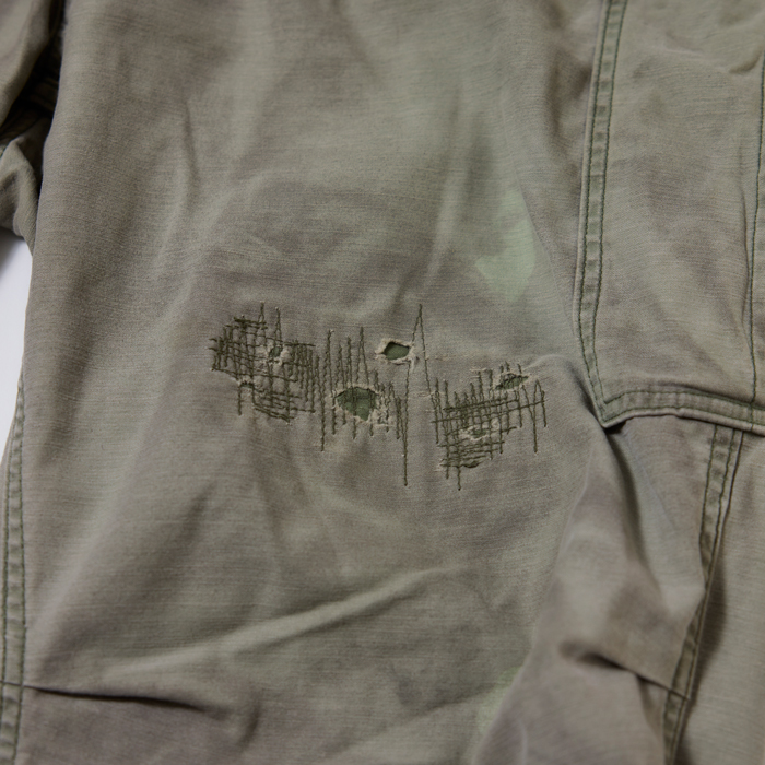 まるで全盛期の『RRL』を彷彿とさせる雰囲気最高なカーゴパンツを出品しよう。当該品は、ジャーナルスタンダード傘下のワーク系ブランド『J.S. Homestead』からリリースされたオリーブカラーのカーゴパンツ。ハードめな褪色加工やダメージ加工が施されており、そのラギッドな加工が太めのシルエットにフィットしている。筆者のお気に入りで、裾のゴム仕様は筆者のセルフカスタム。サイズ「M」だが「L」相当。ヴィンテージ或いはエイジング加工愛好者にお勧め。ミントコンディションだ