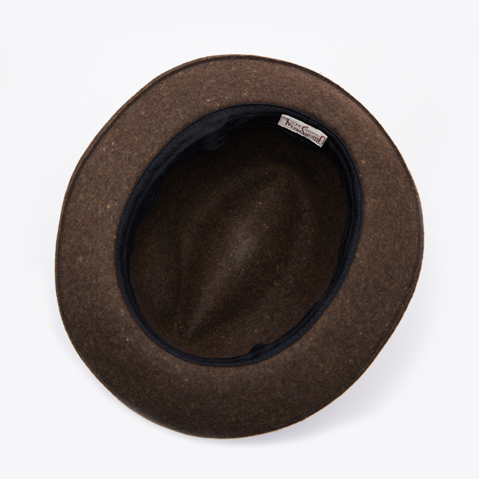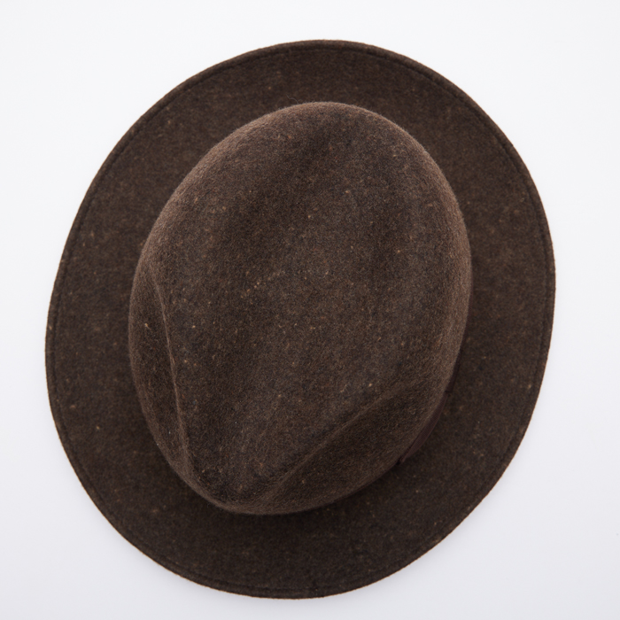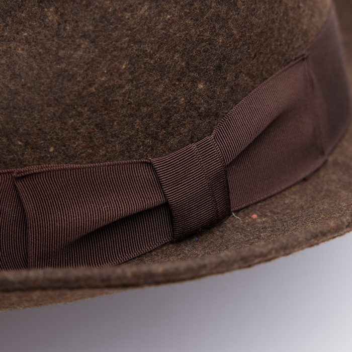 グリース(中折れ帽)はダッズのコーディネートを向上させてくれる。このハット、よく見ると様々なデザインがある。中折れが深いタイプ。その逆で浅いタイプ。正面から見ると丸いシルエット。その逆で四角いシルエット。当該品は『FREEl WHEELERS』がリリースしたウールフェルトのグリースで、濃淡があるブラウン系の帽体を持つ。浅い中折れと四角いシルエットで、クラシックなデザインが特徴。ゆえに、浅めに被ってカジュアルコーデで行きたい。程度は極上だ