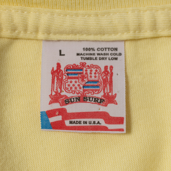 『SUN SURF』を展開する東洋エンタープライズは総合アメカジメーカー。よって沢山のブランドを抱え、生産拠点もワールドワイドだ。当該品は『SUN SURF』と『PEANUTS』がコラボしたスヌーピー物のプリントTで、上記事情からクオリティが高い「MADE IN U.S.A.」が出来上がった。肉厚なクリーム色のボディには、カウボーイハットを被るチャーリー・ブラウンとスヌーピーのグラフィックが描かれている。筆者が推すコレクターズアイテムで、ミントコンディション