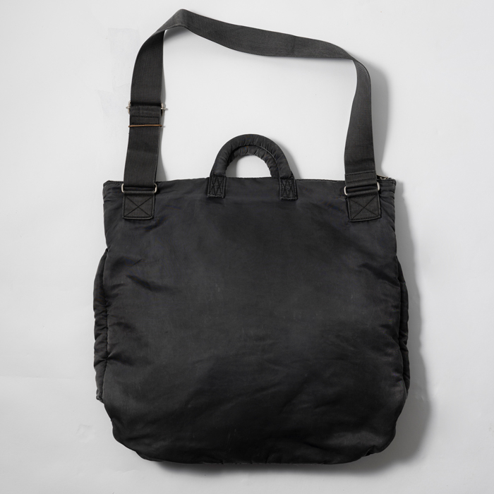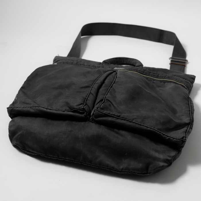 筆者のコレクションはジャンル毎に数量制限がある。それを超えると、自社のオンラインショップに出品する決まりがある。色違いで購入してしまい、出品を繰り返しているのが『PORTER CLASSIC』のヘルメットバッグだ。素材はエイジング加工が施されたチャコールグレーのスーパーナイロン。緩衝材がセッティングされた大判ボディと、ジップ付きの大型ポケットがアメカジ上級者から絶賛されている。タフで存在感抜群ながら、軽量なのも人気の理由。コンディション良好