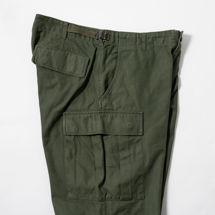 アメカジボトムスの話をしよう。この秋冬、ターゲットはカーゴトラウザースだ。アメカジ愛好家は「新品も中古も、素材とシルエットとディテールの三拍子が揃っているカーゴパンツが少ない」と嘆く。そこで、筆者のコレクションを出品する。当該品は『Cab Clothing』のミリタリーカーゴトラウザースで、上記の三拍子が揃う優れアイテムだ。前面ポケットのみノンフラップなのが、すっきりシルエットと使い勝手の良さを齎している。サイズはW80cm L76cmで、コンディション良好だ