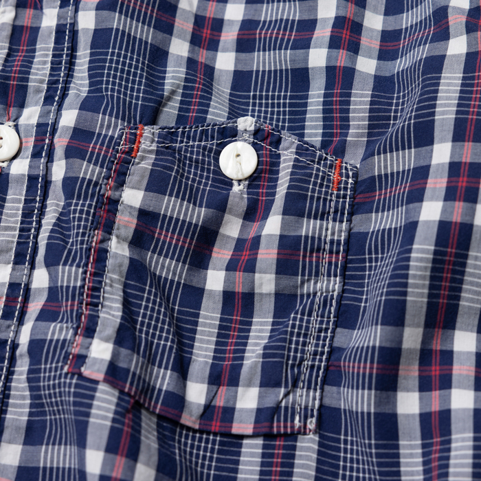 一昔前に人気を集めたファッションも、時が経つと誰も注目しない狙い目に変化する。当該品は『POST O’ALLS』がリリースしたチェックのワークシャツで、“ヴィンテージワーク”ブームの際に、誰もが羨望した左右非対称のポケットが特徴だ。同時に筆者は打ち込みの良いブロード素材と、アメリカンなチェックの柄行きに注目している。チェックのシャツをインナーとして着用する場合、フランネルでは嵩張ることが多々ある。サイズ「S」のアメリカ製で、ミントコンディションだ