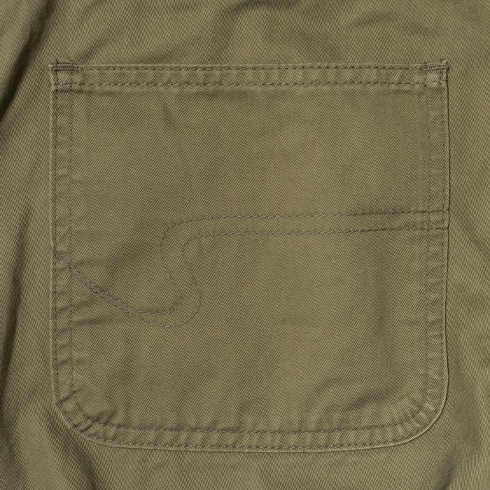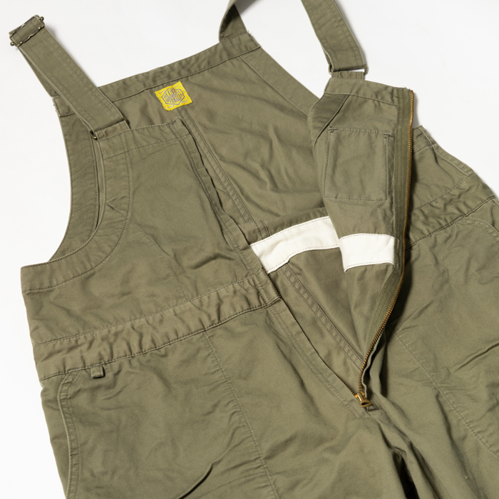 アメカジ上級者が気になっている大阪のデニムブランドがある。それが『THE BLUEST OVERALLS』だ。古き良きものにインスパイアされたヴィンテージラヴァーのデザイナーが、ボトムスをせっせと再構築しているのだ。当該品はミリタリーとアウトドアを融合させたオーバーオールで、打ち込みが良いオリーブドラブのコットン素材とリデザインした各部ディテールがウリ。筆者はフラップ付きの前ポケットとアールが付くデザイン及びステッチがお気に入り。ミントコンディションだ
