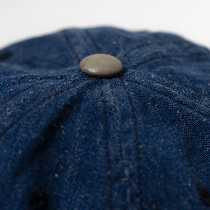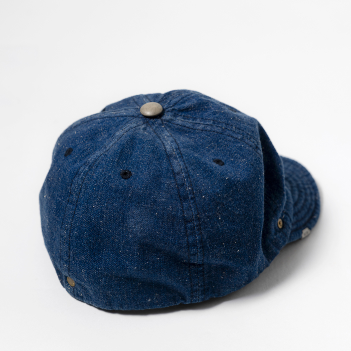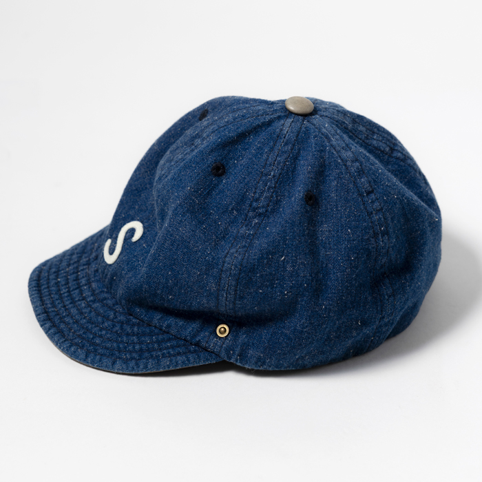 アメカジ上級者御用達のベースボールキャップを出品しよう。当該品は『Anachronorm』が『DECHO』にスペシャルオーダーしたデニムのB.B.キャップだ。このキャップ、帽体の3箇所にブラスのスタッズが打たれていて、アスレチック及びワークのテイストがミックスされているのがポイント。短めのブリムには幾重にもステッチが施されていてラギッド感がある。両ブランドともデニムに拘りがあるので、リジットからの経年変化が楽しめる。ミントコンディションが嬉しい