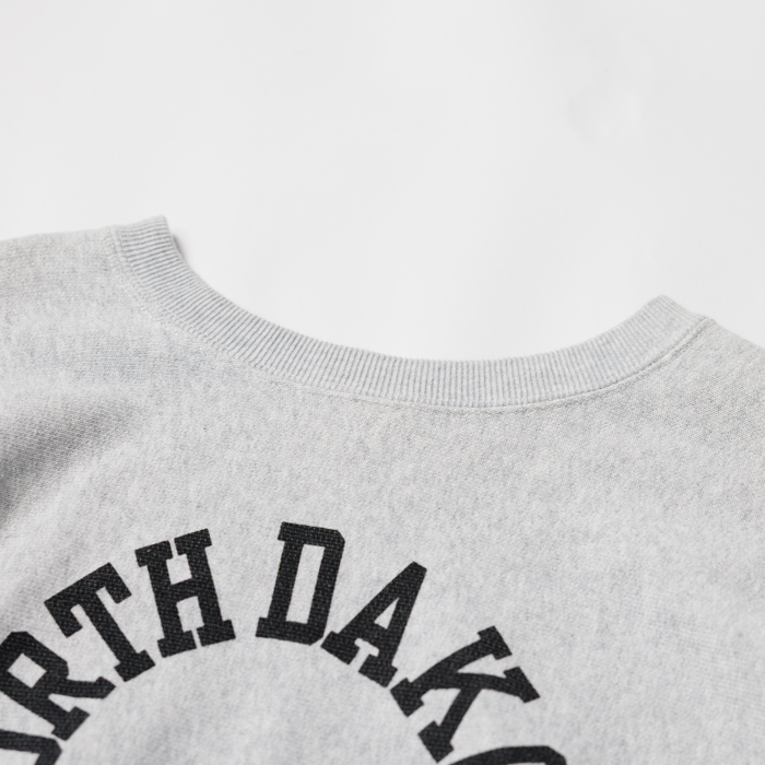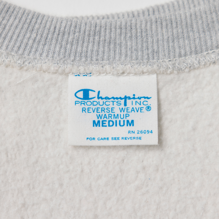 日本の年間平均気温が著しく上昇しているため、今後カットソーアイテムの需要が高くなることが予測される。よって、夏を除く3シーズンに活躍してくれるスウェットシャツは充実させておきたい。当該品は青の単色タグが付く『champion』の復刻版リバースウィーブで、ネ杢グレーボディのクルーネック仕様だ。ブラックの3段ラバープリントで、真ん中に抜き番が挟まるアスレチック物なのが嬉しい。ミントコンディション