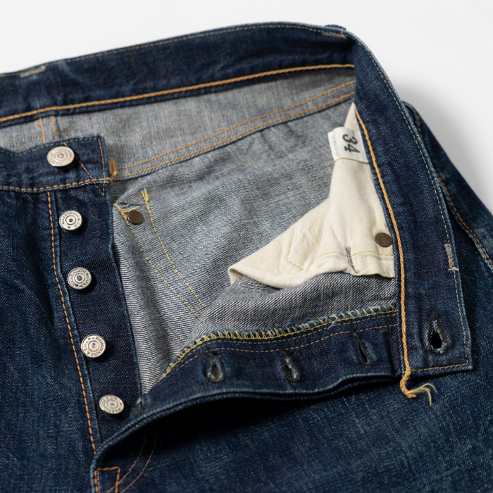 リジットから今日まで、筆者が“育てた”デニムの5ポケットを出品しよう。“育てた”と言っても穿くジーンズが多いため、最近になってようやく味が出てきたばかりが実際のところだ。当該品は『WARE HOUSE』がリリースした「1001XX」で、501XXをターゲットにした復刻版5ポケットジーンズ。先々に期待が持てる経年変化と若干ディフォルメしたディテールがウリだ。ウエストは34インチで、レングスは30インチ(サイズ参照)。軽度のエイジング物で、グッドコンディションだ