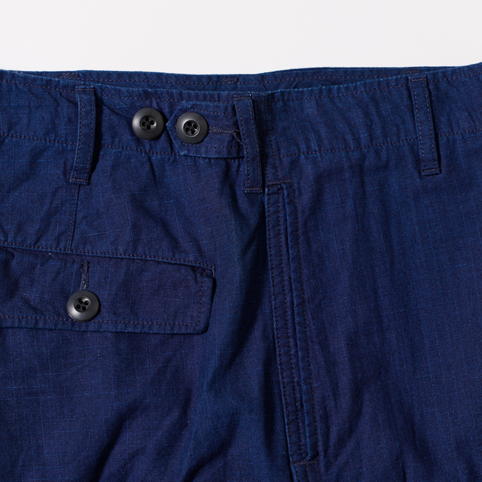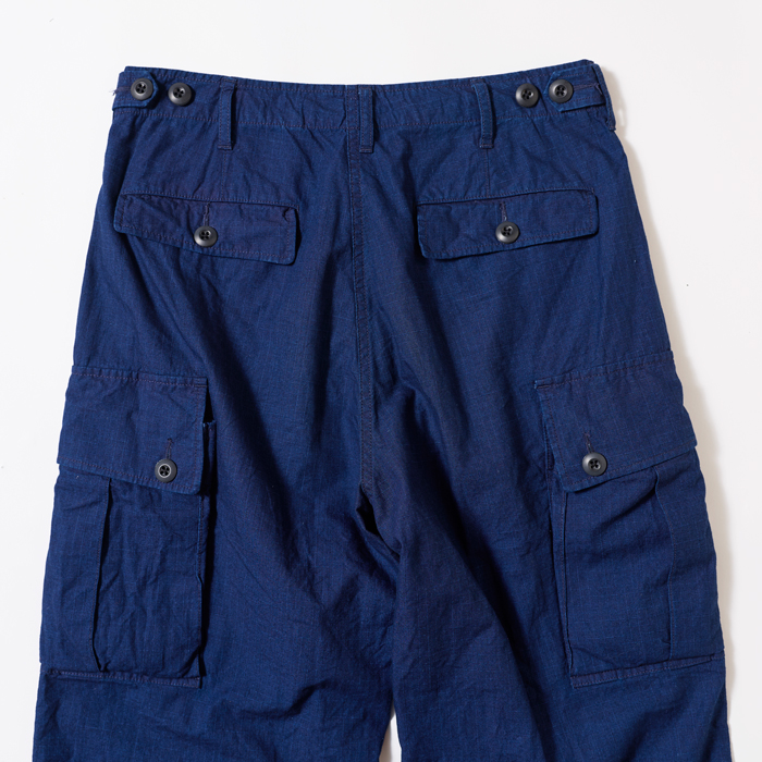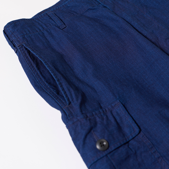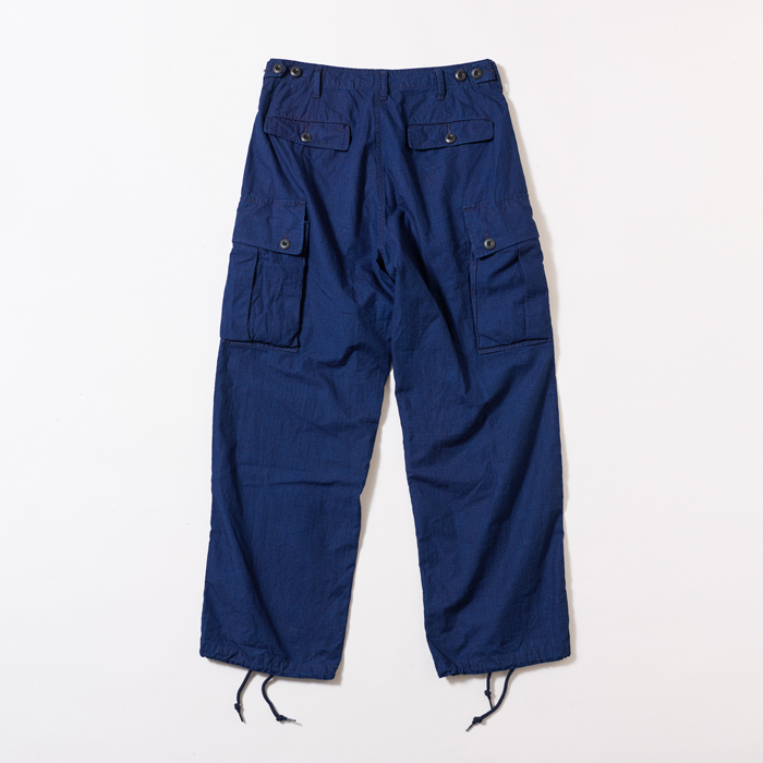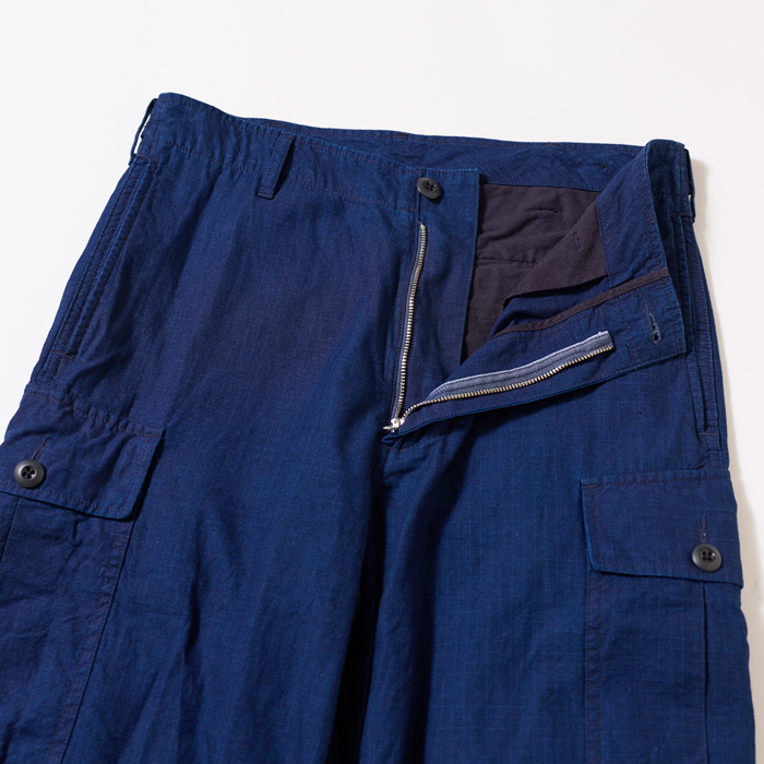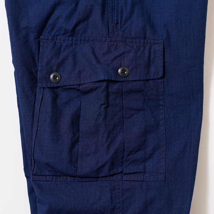 『BEAMS』のオリジナルアイテム制作能力は、日本のメンズブランドでも有数の実力を持つ。そのリーディングブランドが『BEAMS PLUS』だ。当該品は同ブランドがリリースしたカーゴパンツで、素材はコットン100%のリップストップだ。濃いめのインディゴを探していて、やっと見つけたのがこのパンツだった。『BEAMS PLUS』のお得意アイテムゆえ、太めのシルエット、リップストップ素材、各部ディテール、縫製、部材などすべてがパーフェクト!ミントコンディションが嬉しい