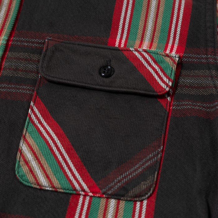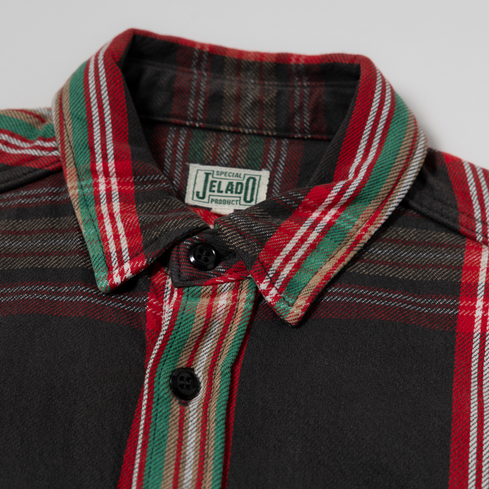 筆者が『JELADO』のフランネルシャツを推すには明快な理由がある。それは❶アメリカンなチェックの柄行き❷ヘビーデューティーなフランネル素材❸胸ポケットのサイズと位置❹短めな着丈❺ギアレベルの頑丈な縫製だ。数多にリリースされる中で、トップのクオリティを誇っている。当該品は同ブランドがリリースしたフランネルシャツで、ブラック×レッド×グリーンというダッズが似合う渋めのカラーリング。現在の上代は3万円オーバー。サイズ「L」でミントコンディションだ