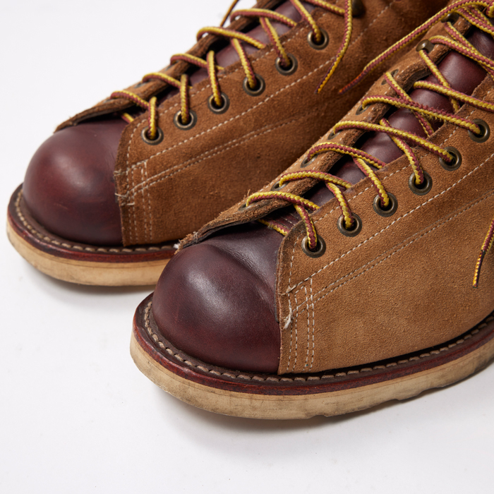 ワークブーツの話をしよう。実のところ、アメカジ上級者には『CIPPEWA』愛好家が多い。アメリカを代表する本気のワークブーツだが、デザイン及び仕様がクールなのがその理由だ。当該品は、同ブランドがリリースした5インチハイトのレースアップブーツ。レザーはヘビーなベージュのラフアウトで、トゥとベロにはブラウンのスムースレザーが配されている。このツートーンが、アメカジ上級者のハートを掴んでいる。サイズは26.5cmくらい。程度も良好だ