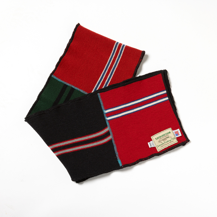 冬場のカレッジ及びアスレチックコーディネートで、筆者が愛用しているウルトラレアなマフラーを出品しよう。当該品は『SKOOKUM』がリリースしたいわゆるスクールマフラーで、色柄が異なる6つのプレートを組み合わせたマルチ仕様が特徴だ。素材はウール100%のニット編みで、目が詰まっているので風が入りづらく暖かい。カレッジライクなパターンゆえ、コーディネートはコーチジャケット、スタジャン、ダッフルコートなどと相性抜群。ダッズに似合うミントコンディション物だ。アメリカ製